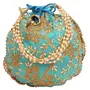 HomeFashionBagsTouchstone NEW Indian Hand Embroidered Floral Shopping Gifts Jewelry Wedding Sweet Distribution Faux Pearls Strings Drawstring Fancy Teal Green Color Bag Purse Pouch For Women.