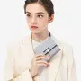 VEBAGA INOVERA Vegan Leather Women's Fashion Card Coin Holder Ladies Small Metal Leaf Purse Wallet (Black), Grey, Fashion