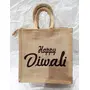 Women's Happy Diwali Jute Bag with Zip for shopping