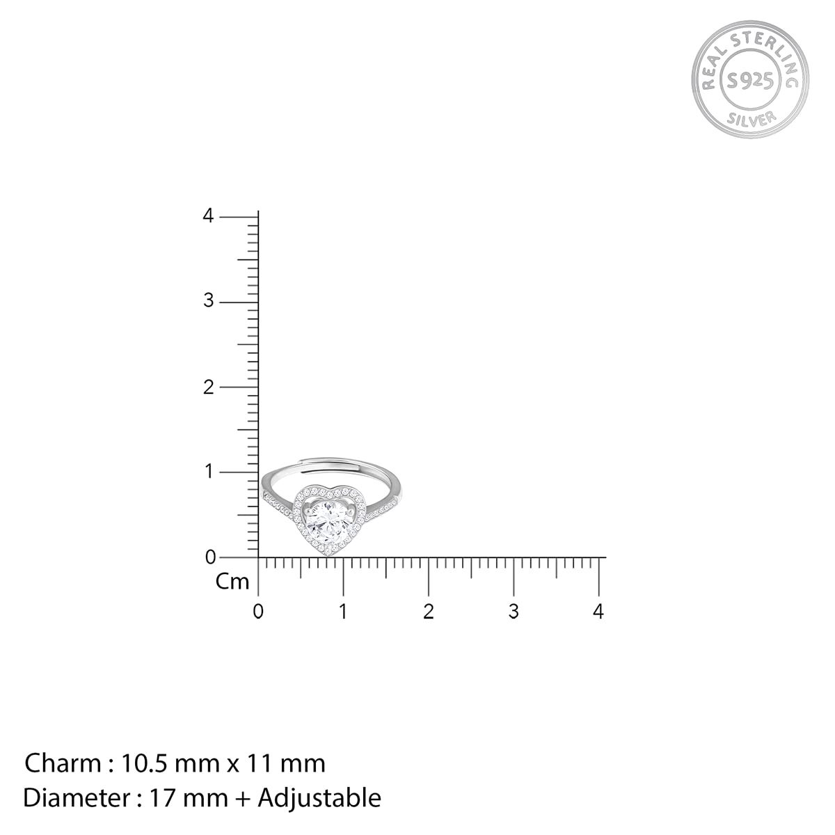 The Inspiration: The Silver Zircon Heart's Desire Ring is inspired by the desires that resurface in extremity. The Design:The Silver Zircon Heart's Desire Ring has the design of a beautiful heart shape studded with zircons all across the design and one eye-catching single piece of zircon in the centre. AAA+ Quality Zircon Stones Sterling Silver with 925 hallmark Adjustable size to ensure no fitting issues Charm: 10.5 mm x 11 mm; Diameter: 17 mm Rhodium e-coat to prevent tarnish Comes with the GIVA Jewellery kit and authenticity certificate Styling Tips:Wear a cream colour high neck top with a rhinestone embellished collar with high waisted jeans let the sparkle of the ring match that of your outfit.
