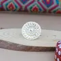 A traditional kundan and pearl studded adjustable ring is a type of Indian jewelry that features a combination of kundan and pearl stones set on an adjustable band. The adjustable band of the ring makes it easy to wear for people with different finger sizes. It also allows for flexibility in styling the ring with different outfits and occasions. The combination of kundan and pearl stones gives the ring a traditional and elegant look. The intricate design and detailing of the stones add to the ring's overall beauty and sophistication. The ring is often worn as a statement piece of jewelry for formal events such as weddings and cultural celebrations. Overall a traditional kundan and pearl studded adjustable ring is a beautiful and versatile piece of jewelry that can add a touch of elegance and sophistication to any outfit.