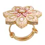 I Jewels Gold Plated Traditional Blue Enamel/Meena Work Floral Finger Ring Glided With Uncut Polki Kundans For Women (FL171W)