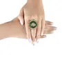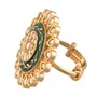 This adjustable ring is intricately crafted in 18k Gold Plating & based on Brass. It is glided with uncut Polki Kundans and Beads. Style this set with your ethnic attire to complete the look.