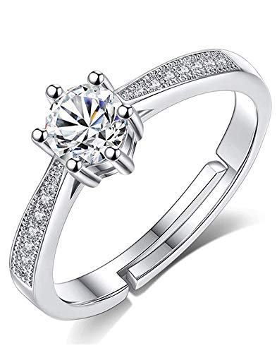 I Jewels Valentine's Special 18K Silver Plated Elegant Classy CZ Crystal Adjustable Designer Finger Ring for Women and Girls (A81-163)