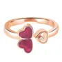 Redefine your feminine style with a contemporary touch and buy this exclusive tripple heart red meena work adjustable finger ring with white crystal stones. This finger ring is one timeless treasure to cherish forever. It is a perfect gift for your loved ones. Artistically designed and crafted in high quality shiny glossy rosegold plating makes this finger ring a unique piece. The size of the finger ring is adjustable.