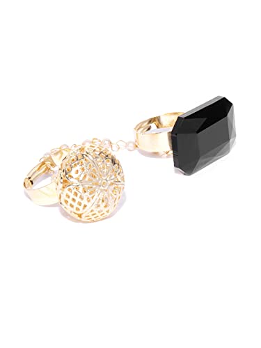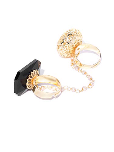 Priyaasi Golden ColorAdjustable Dual Finger Ring for Women