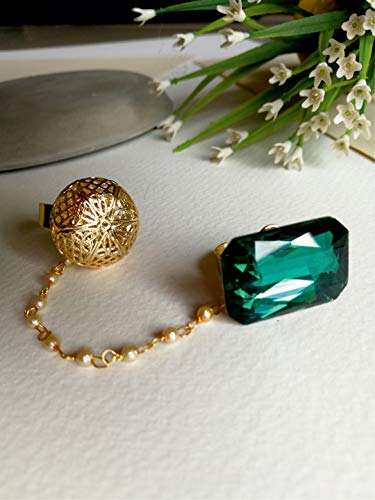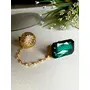 • Material: These gold plated rings are adorned by a green stone and are adjustable
