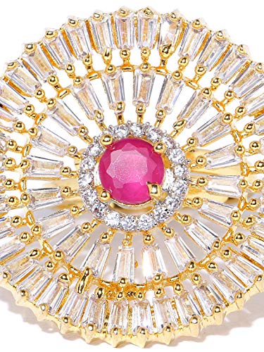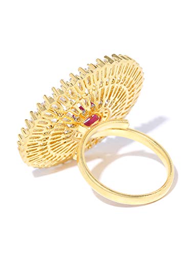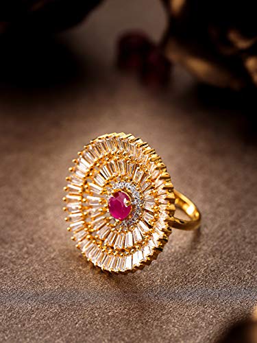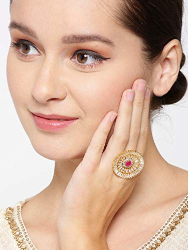 Priyaasi Stylish Magenta & Gold Round Shaped Gold-ColorRing for Women and Girls