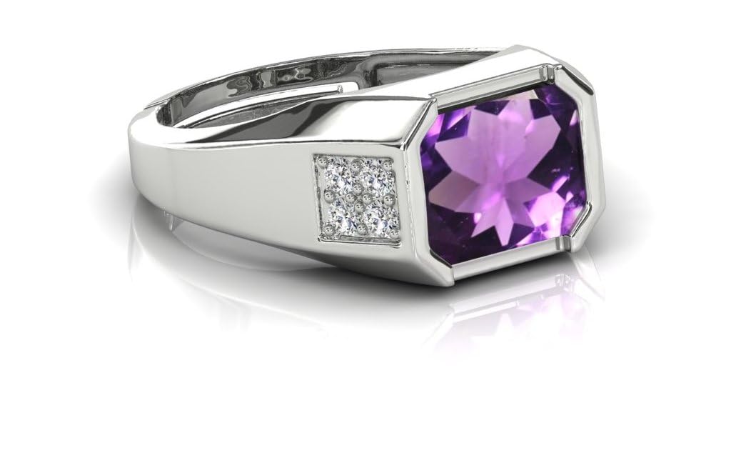 RRVGEM amethyst ring 10.50 Ratti Handcrafted Finger Ring With Beautifull Stone katela/jamuniya ring Silver Plated fo runisex