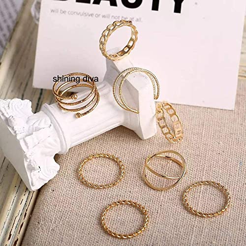 Set of 8 Boho Midi Finger Crystal Rings for Girls and Women (11811r)