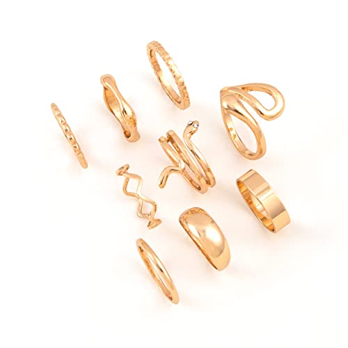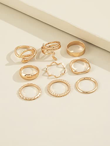 Shining Diva Fashion Latest Stylish Metal Boho Midi Finger Rings for Women and Girls - Set of 9 (14172r) Golden Metal No Gemstone