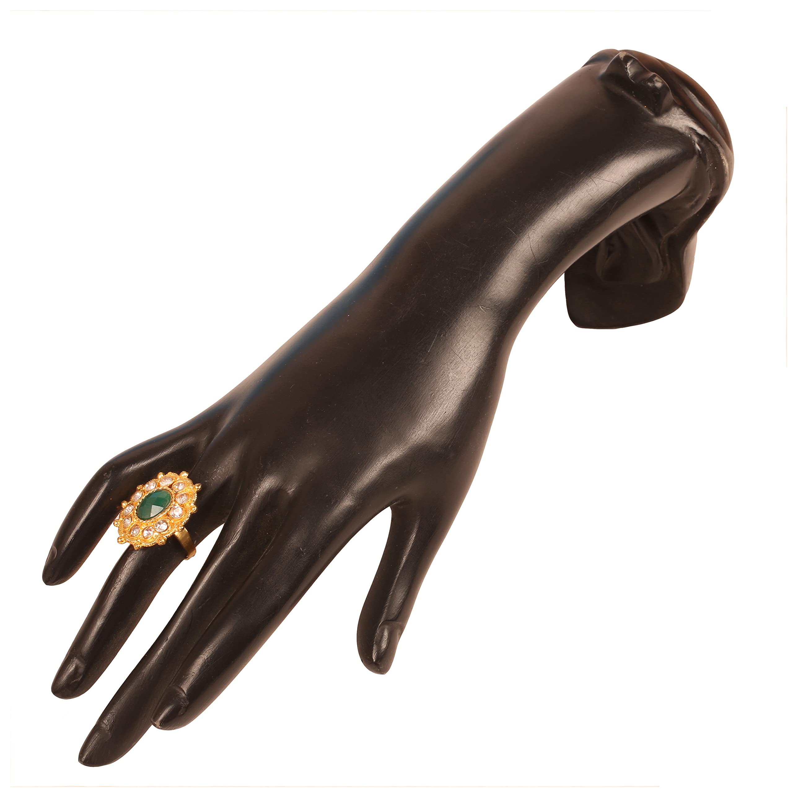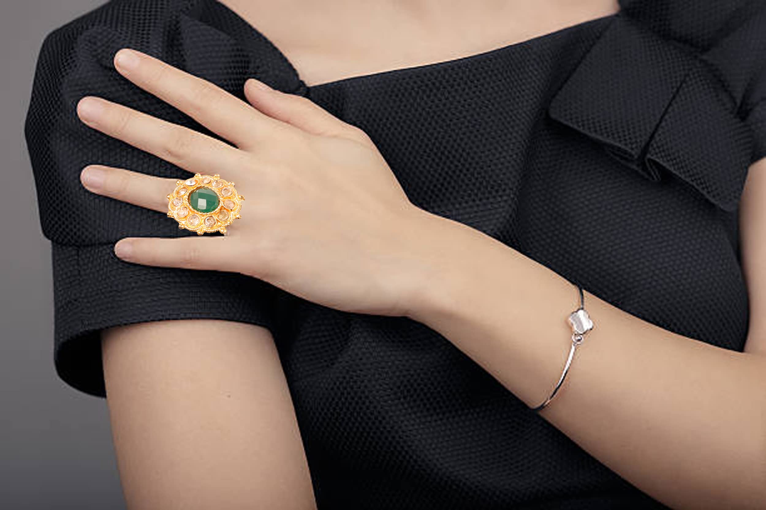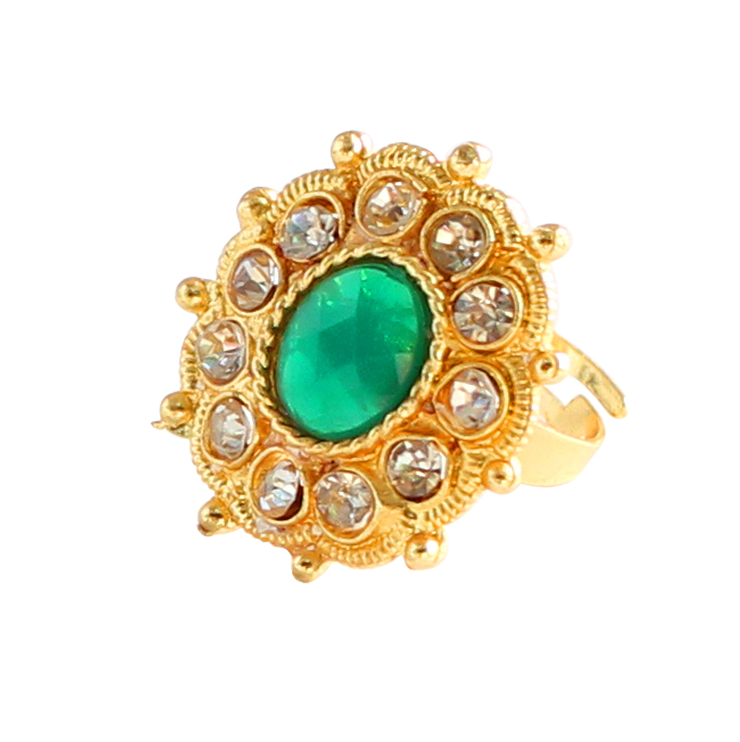 Touchstone Traditional Indian Rhinestone Designer Wedding Jewelry Finger Ring in Gold Tone for Women