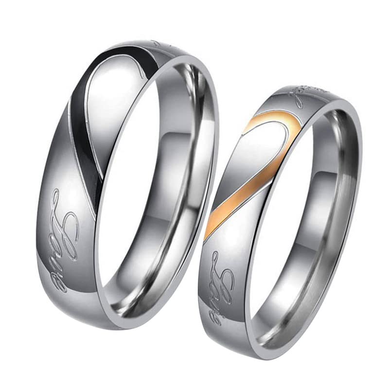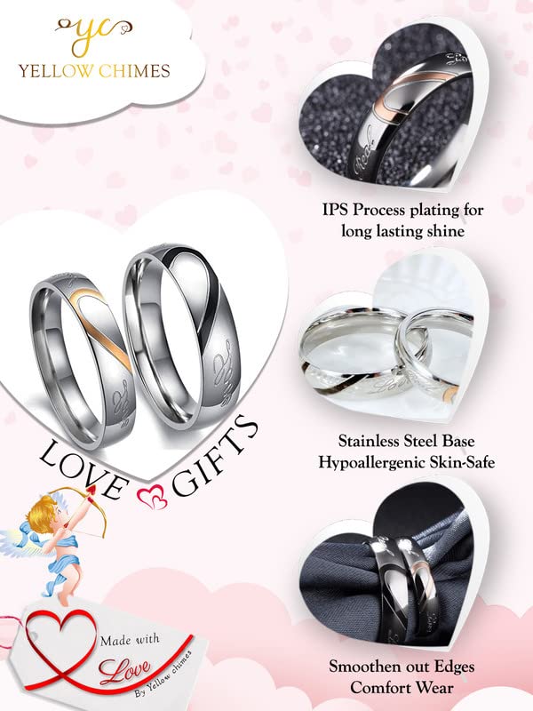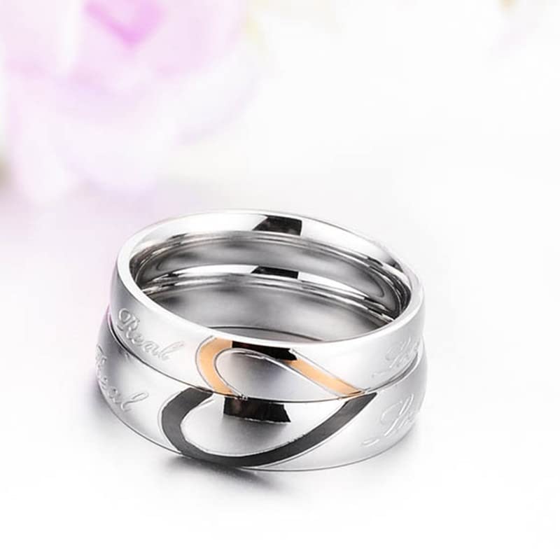 Yellow Chimes Lovers Heart Engraved 'Real Love' Proposal Couple Rings for Girls and Boys