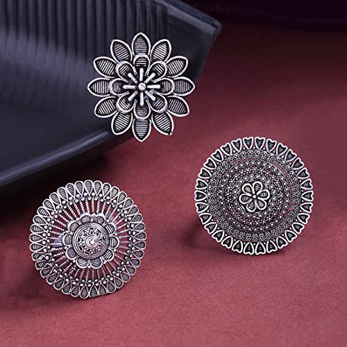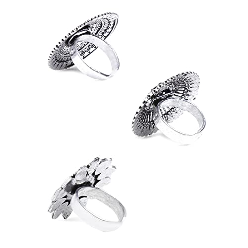 Adjustable Silver Oxidized Royal Looks Traditional Ring of Mirror work with Craftsmanship These Rings can be clubbed with any of your Favourite Jewellery Sets Beautiful Looks at One Glance- with Intricate High Polish creates Glamorous Reflections and adds Luxurious Looks