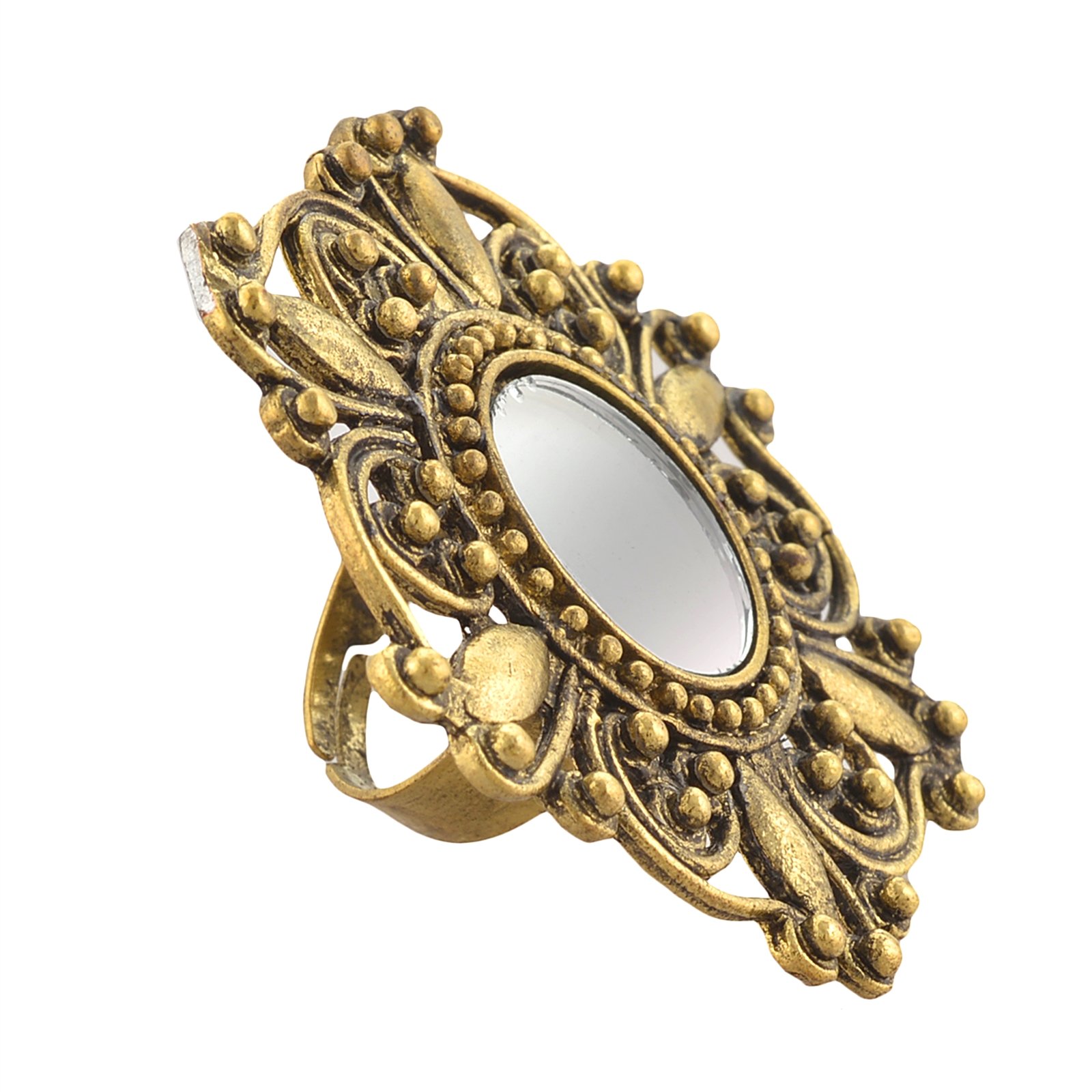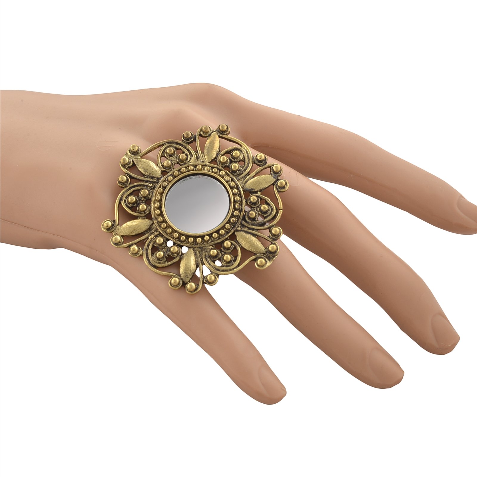 Zephyrr Jewellery Adjustable Round Ring with Carved Design Mirror