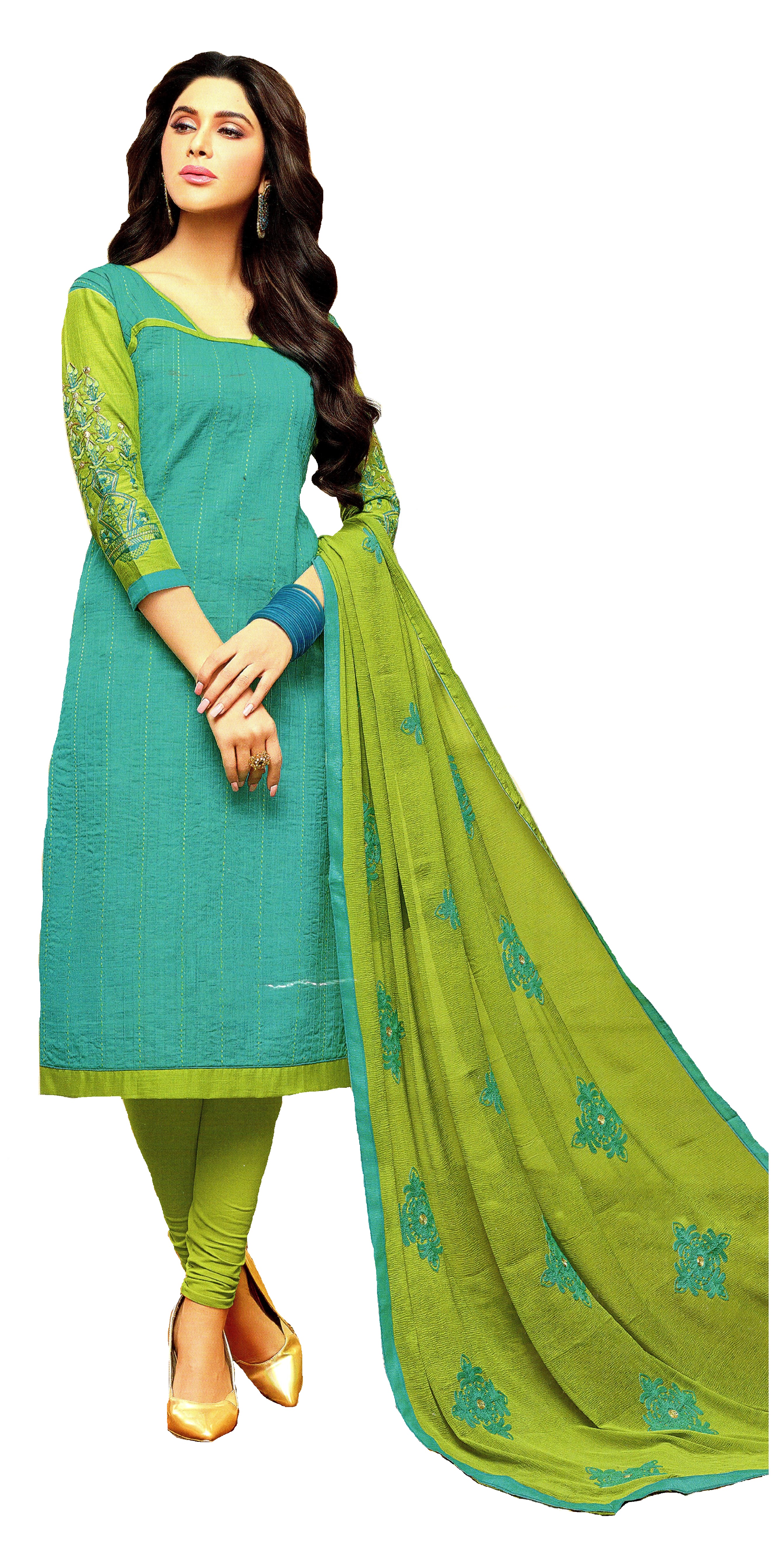 MAHATI cotton teal embroidered salwar suits - Top 2.5m Bottom 2.4 m Dupatta 2.5 m. For stitched suits (with lining) - Size in Inches: Height 46 - Size :S 36 M 38 L 40 XL 42 XXL 44 3XL 46 4XL 48 5XL 50 - Handwash - Dry in Shade - YOU MAKE A MARK WHEN YOU WEAR MAHATI