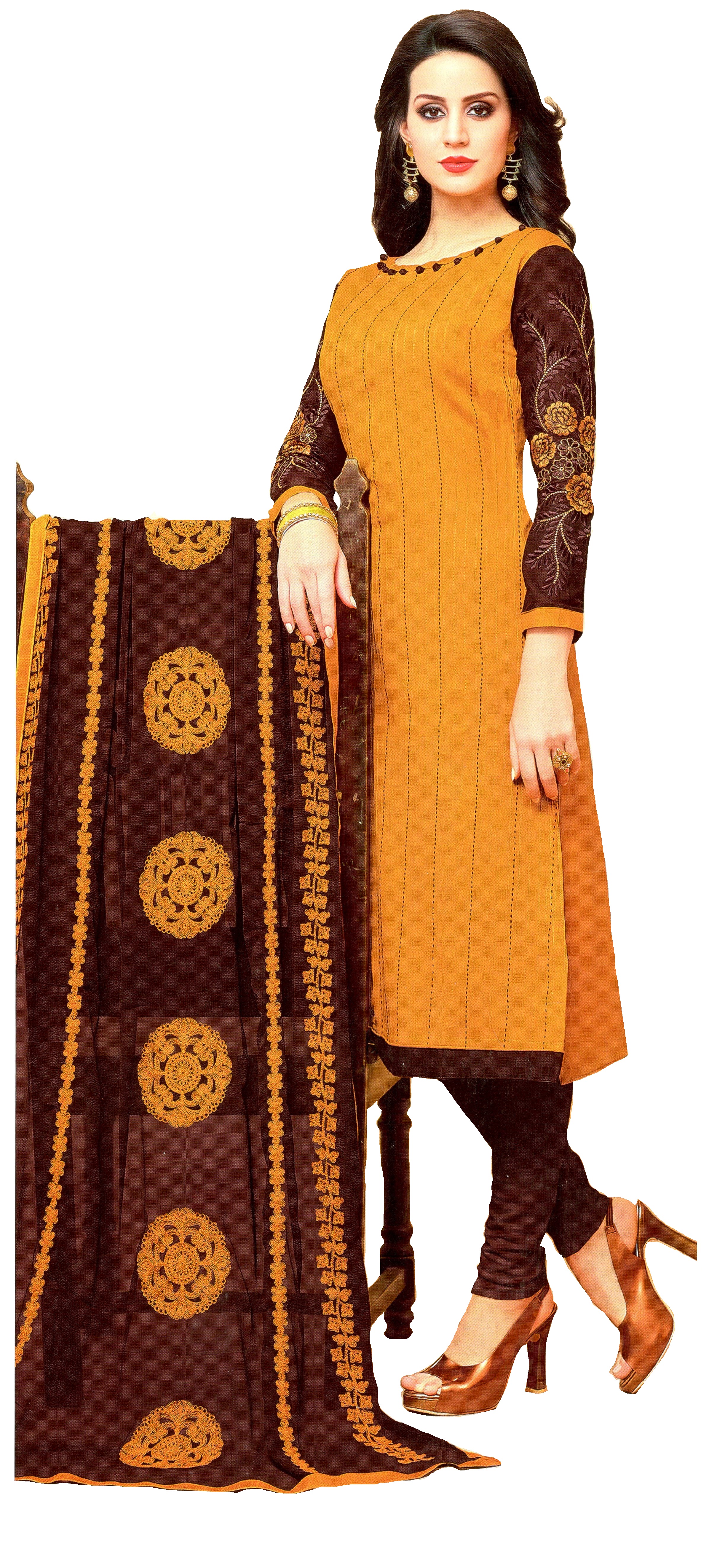 MAHATI cotton yellow embroidered salwar suits - Top 2.5m Bottom 2.4 m Dupatta 2.5 m. For stitched suits (with lining) - Size in Inches: Height 46 - Size :S 36 M 38 L 40 XL 42 XXL 44 3XL 46 4XL 48 5XL 50 - Handwash - Dry in Shade - YOU MAKE A MARK WHEN YOU WEAR MAHATI