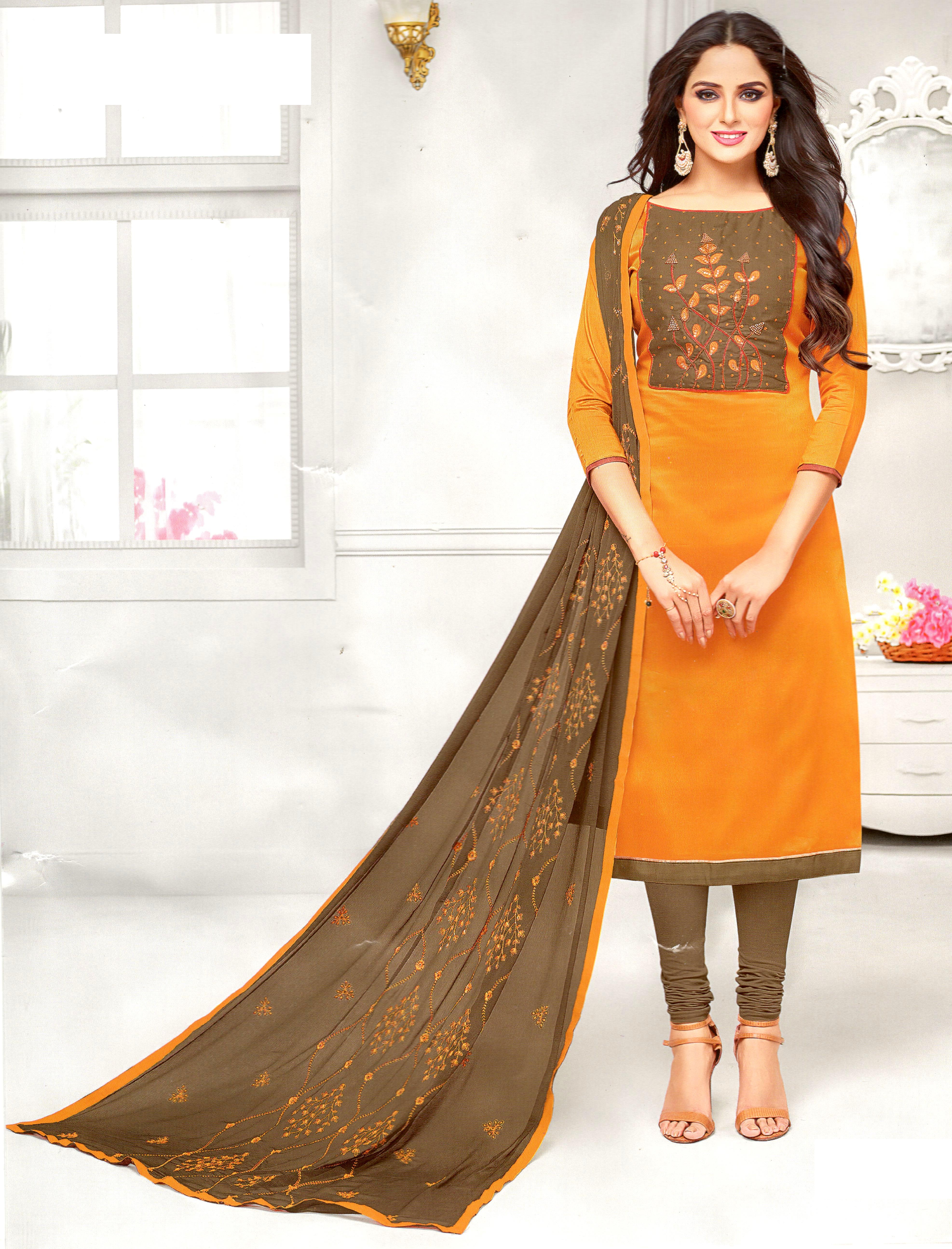 MAHATI cotton yellow embroidered salwar suits - Top 2.5m Bottom 2.4 m Dupatta 2.5 m. For stitched suits (with lining) - Size in Inches: Height 46 - Size :S 36 M 38 L 40 XL 42 XXL 44 3XL 46 4XL 48 5XL 50 - Handwash - Dry in Shade - YOU MAKE A MARK WHEN YOU WEAR MAHATI