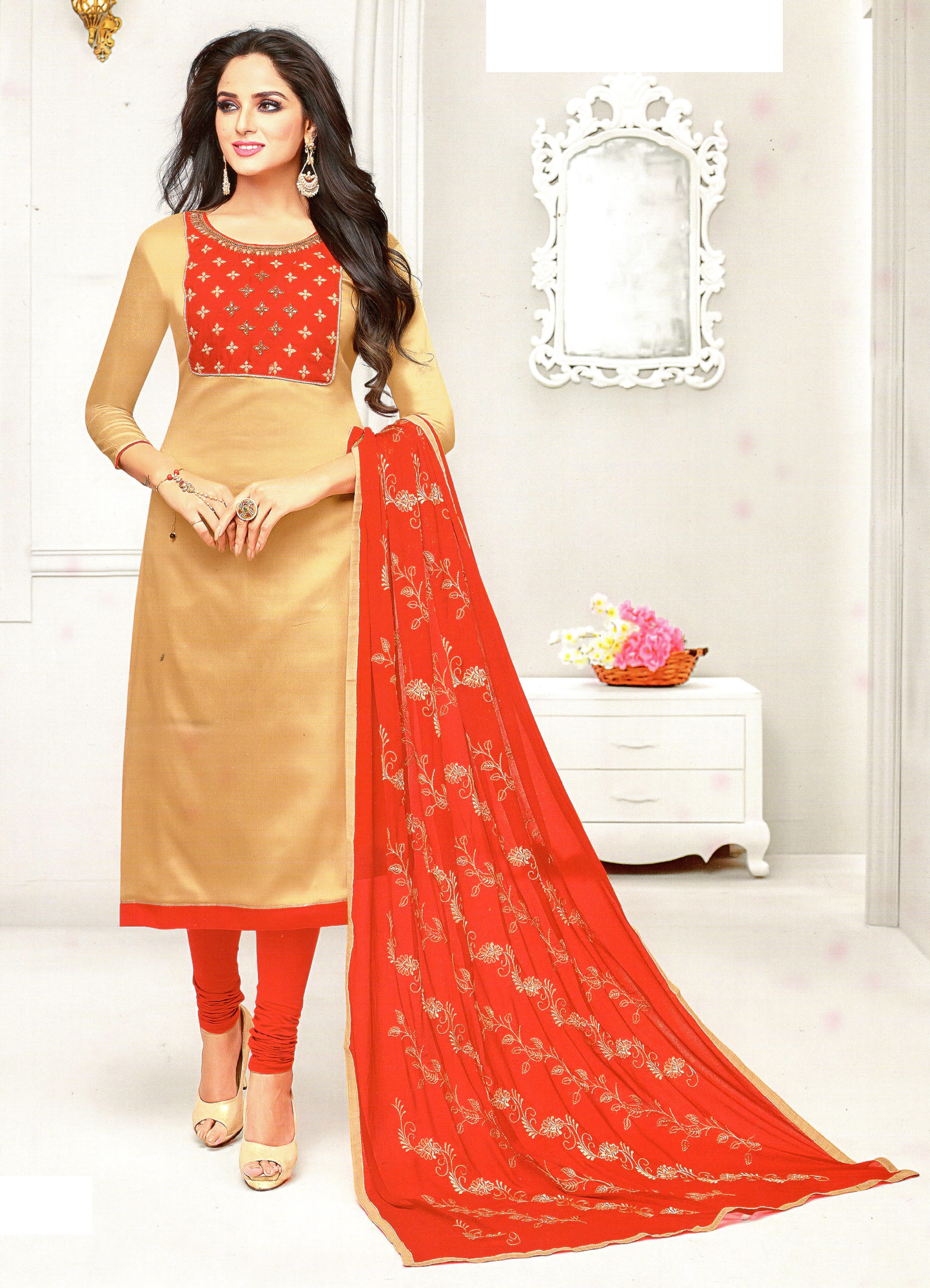MAHATI cotton gold embroidered salwar suits - Top 2.5m Bottom 2.4 m Dupatta 2.5 m. For stitched suits (with lining) - Size in Inches: Height 46 - Size :S 36 M 38 L 40 XL 42 XXL 44 3XL 46 4XL 48 5XL 50 - Handwash - Dry in Shade - YOU MAKE A MARK WHEN YOU WEAR MAHATI