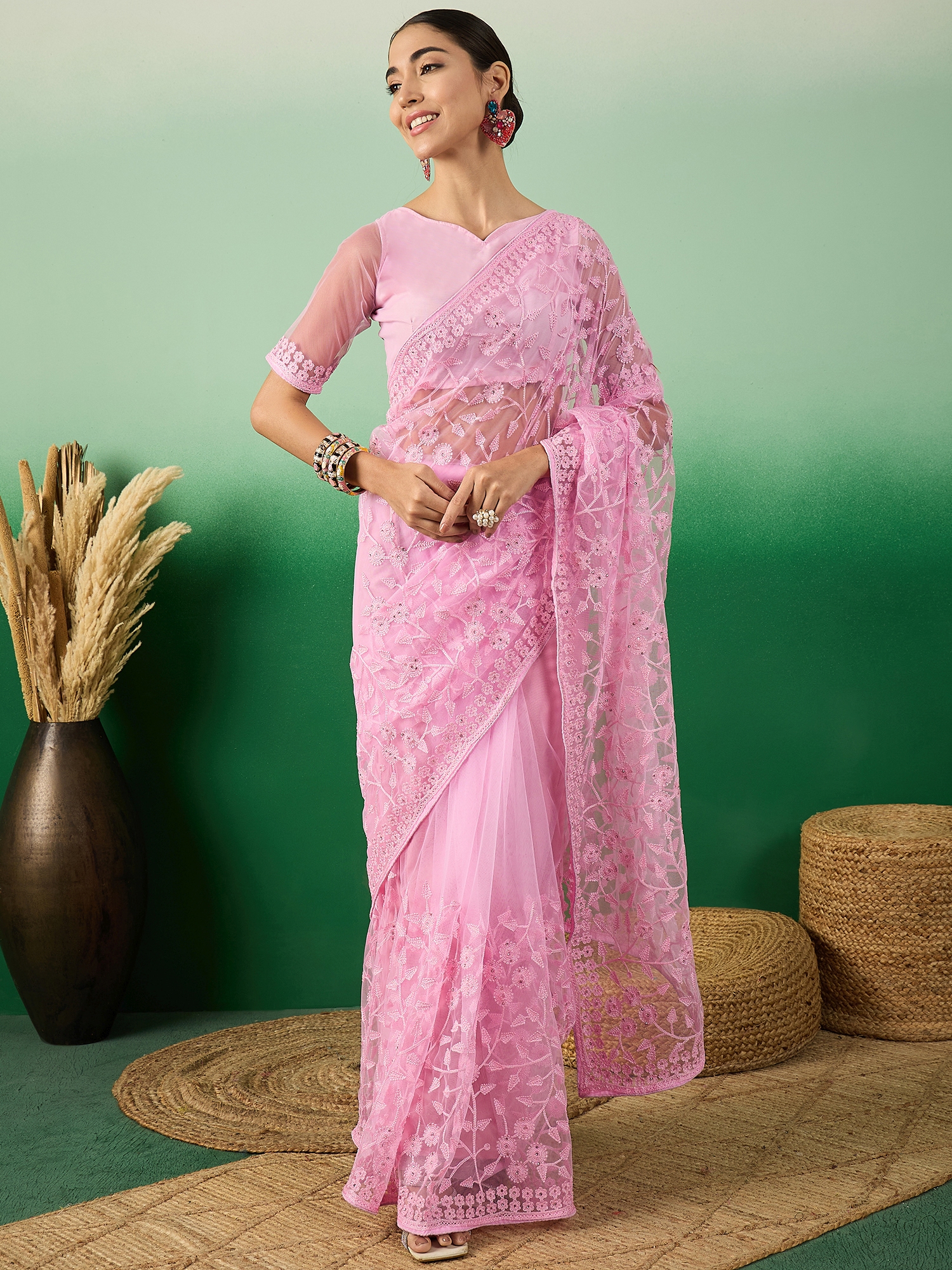 AASTHA FASHION Fashion Dream Womens Baby Pink Net Saree | Soft & Elegant Traditional Wear