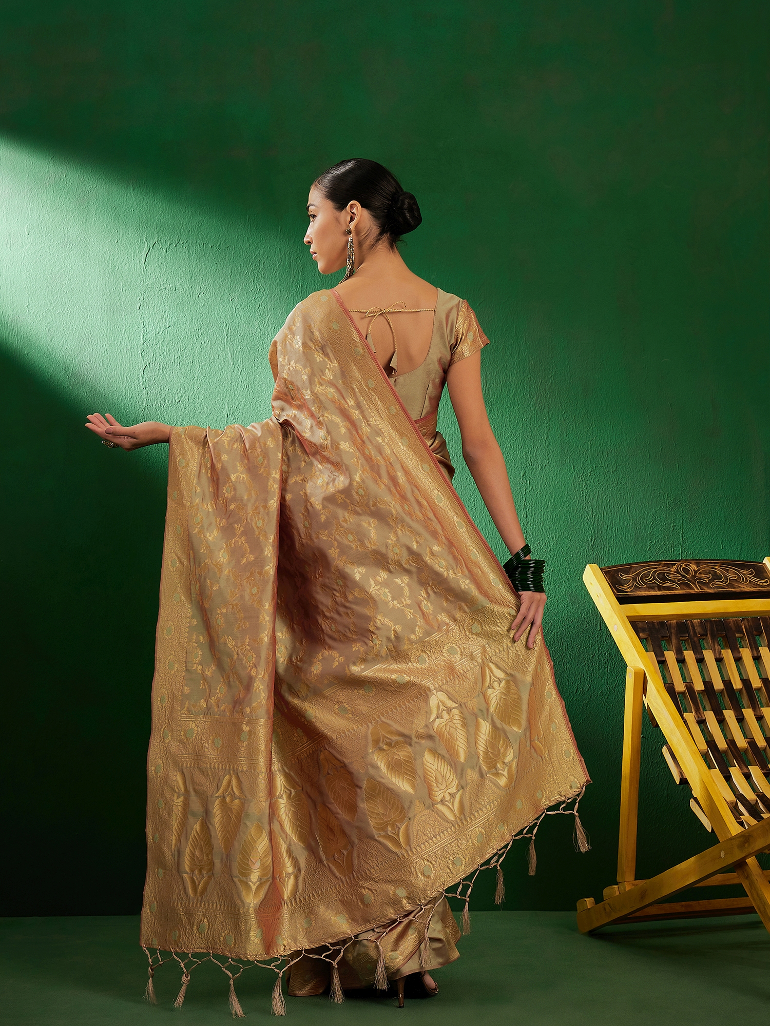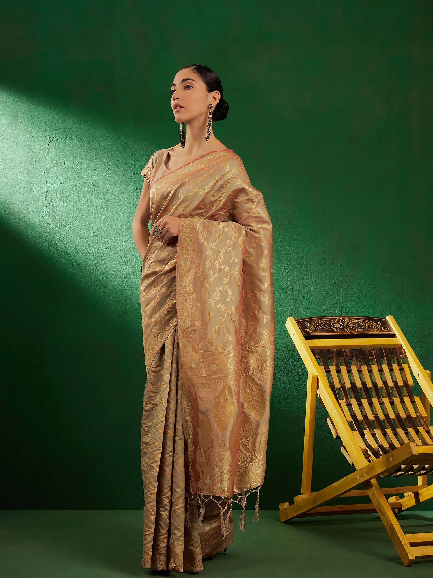 AASTHA FASHION Fashion Dream Womens Beige Banarasi Silk Saree | Soft & Elegant Traditional Wear