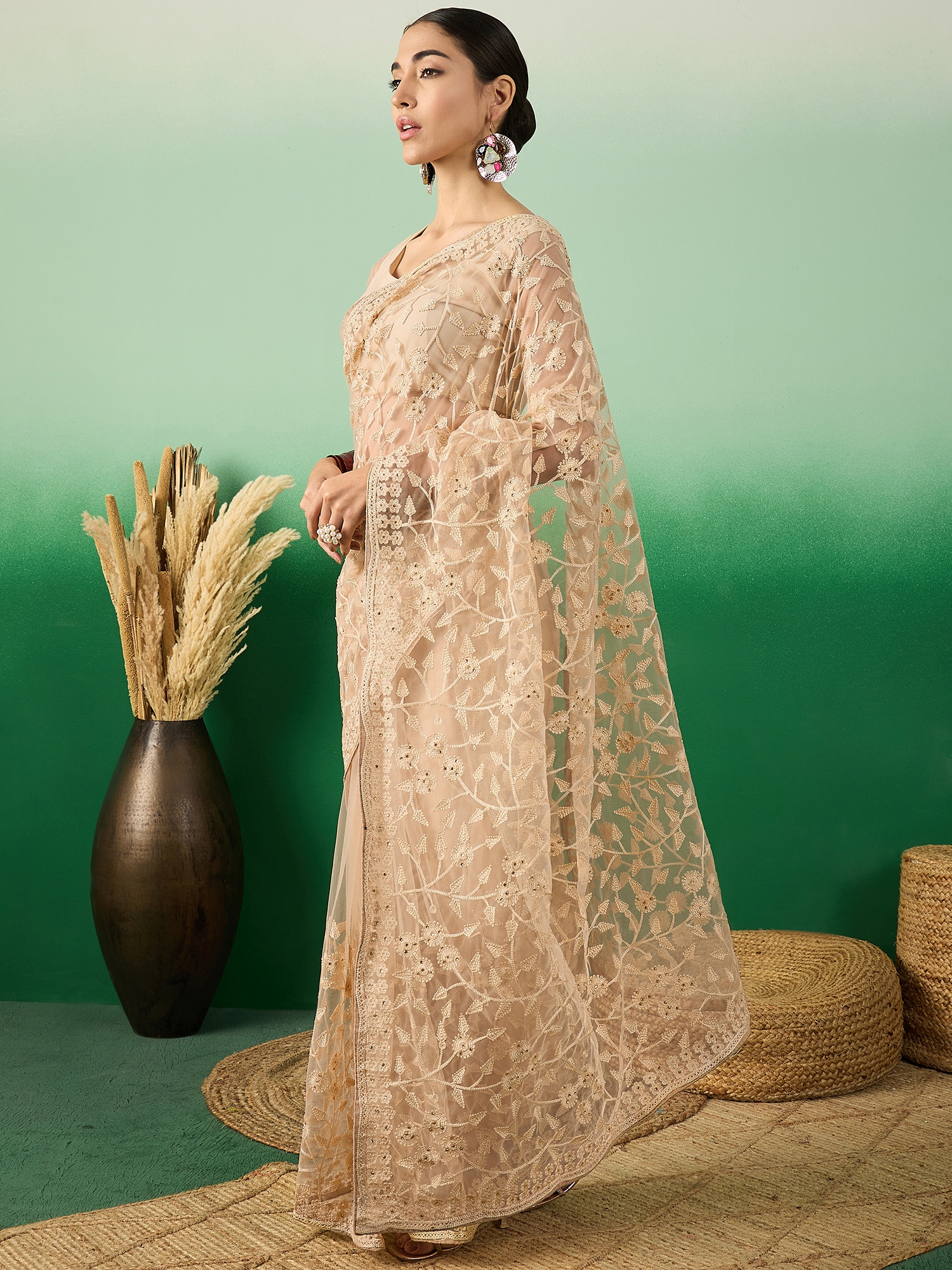 AASTHA FASHION Fashion Dream Womens Beige Net Saree | Soft & Elegant Traditional Wear