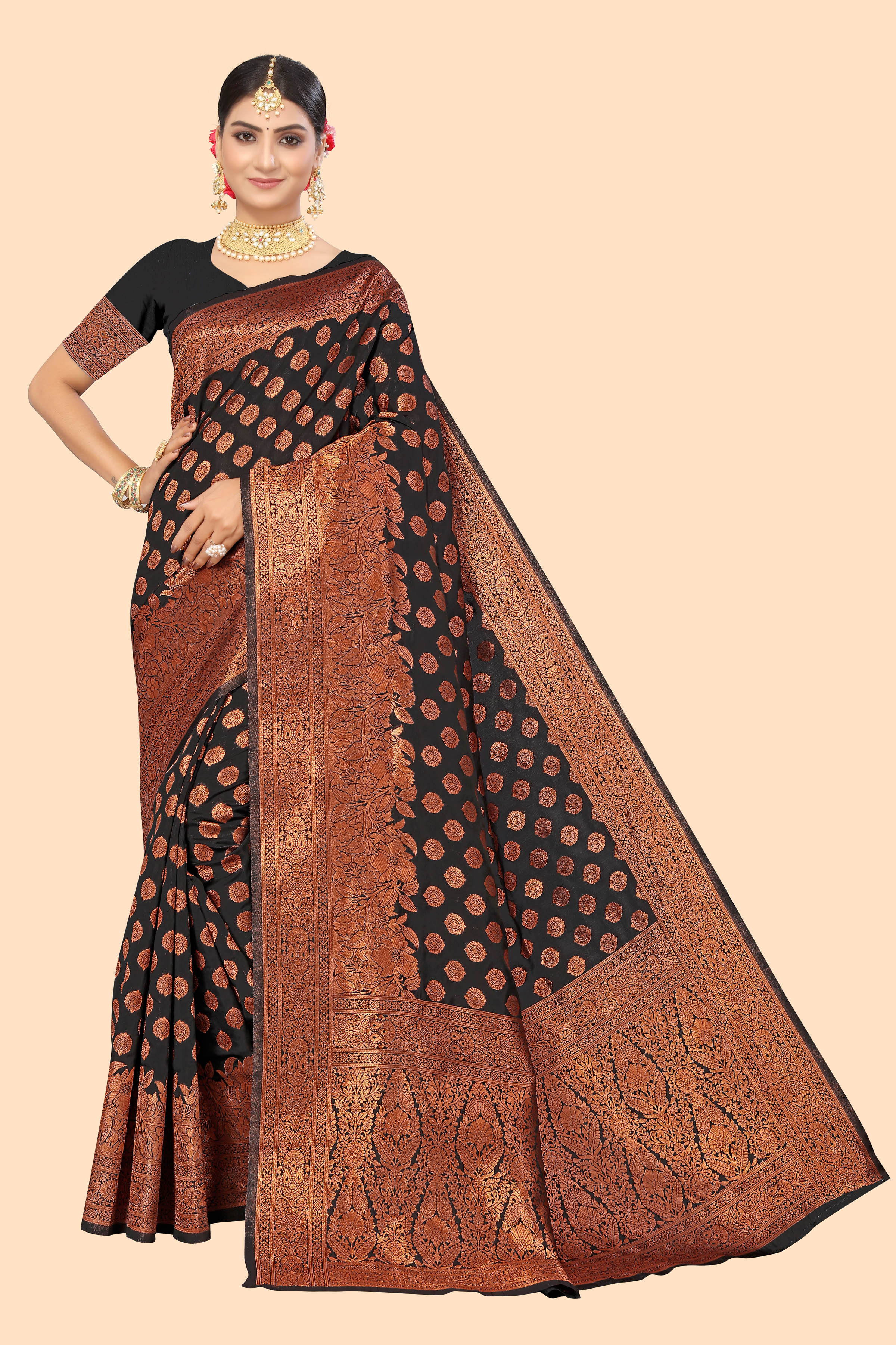 AASTHA FASHION Fashion Dream Womens Black Banarasi Silk Saree | Soft & Elegant Traditional Wear