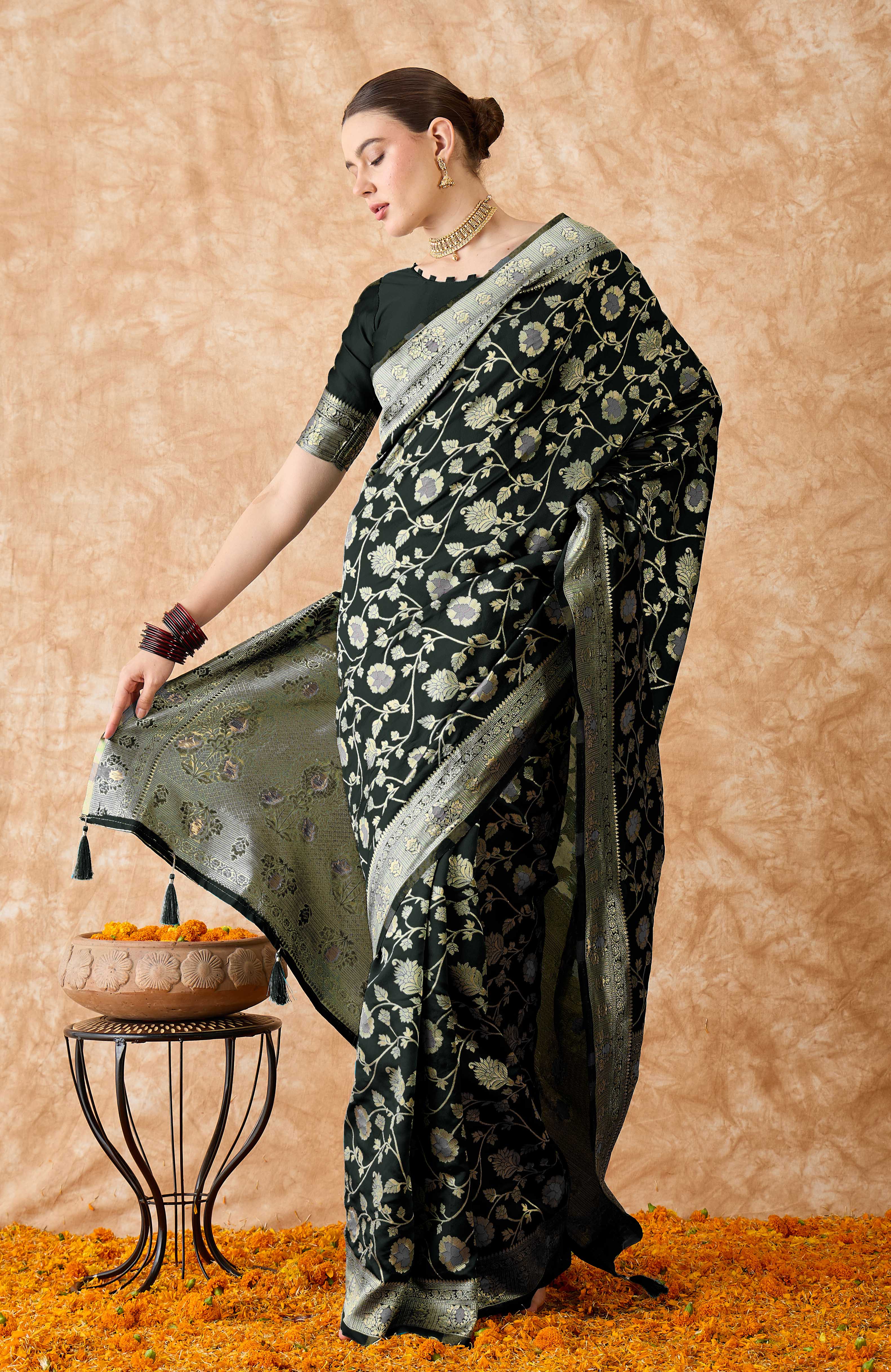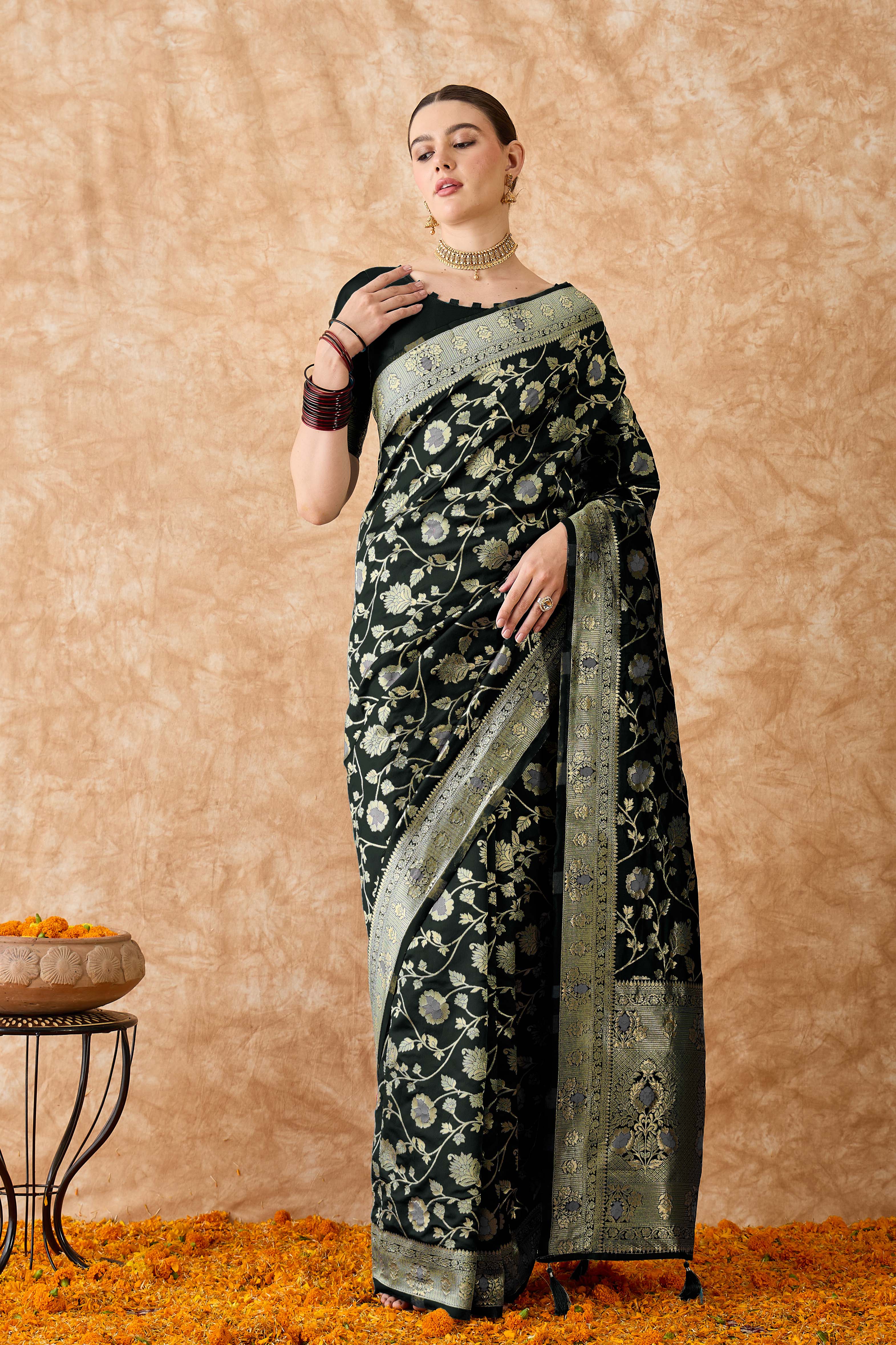 • Saree Fabric-Banarasi Silk ,Blouse Fabric-Banarasi Silk