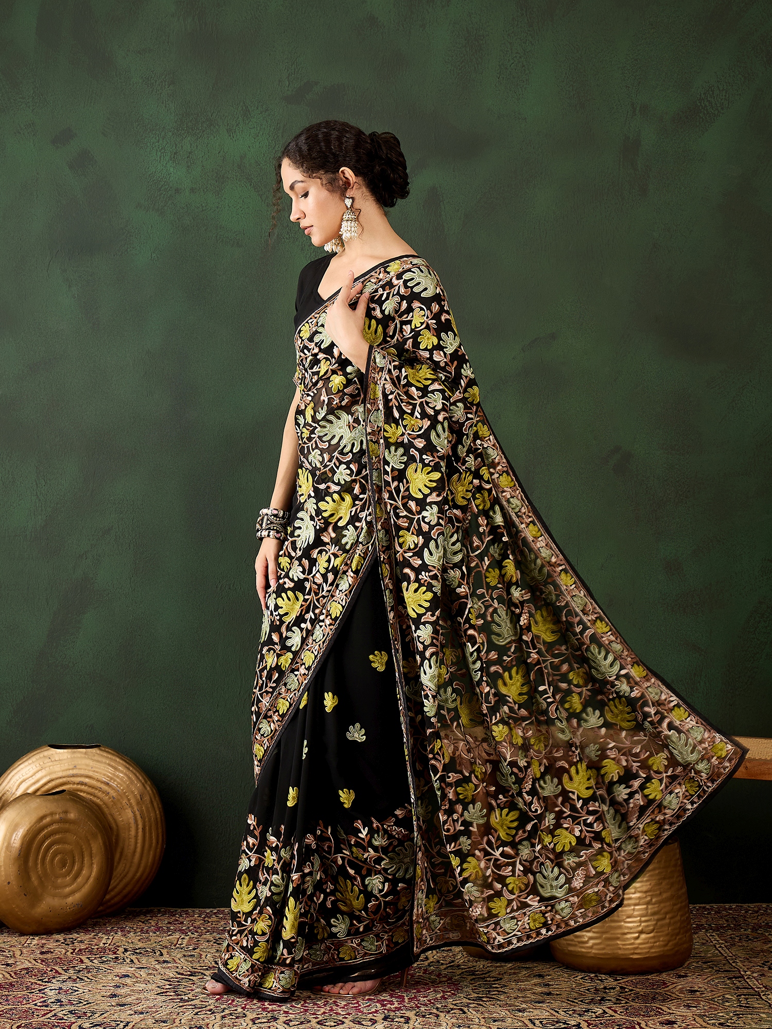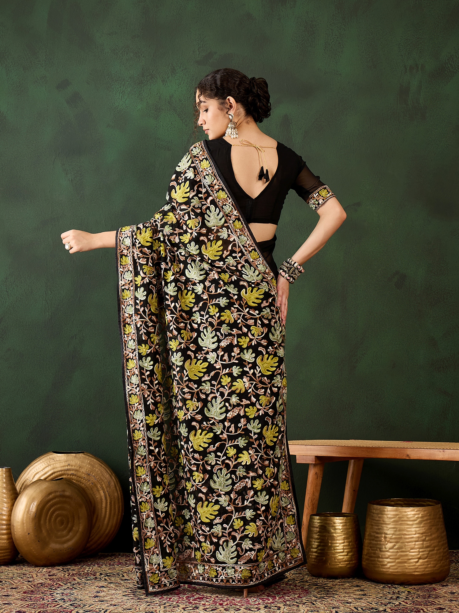 AASTHA FASHION Fashion Dream Womens Black Georgette Saree | Soft & Elegant Traditional Wear