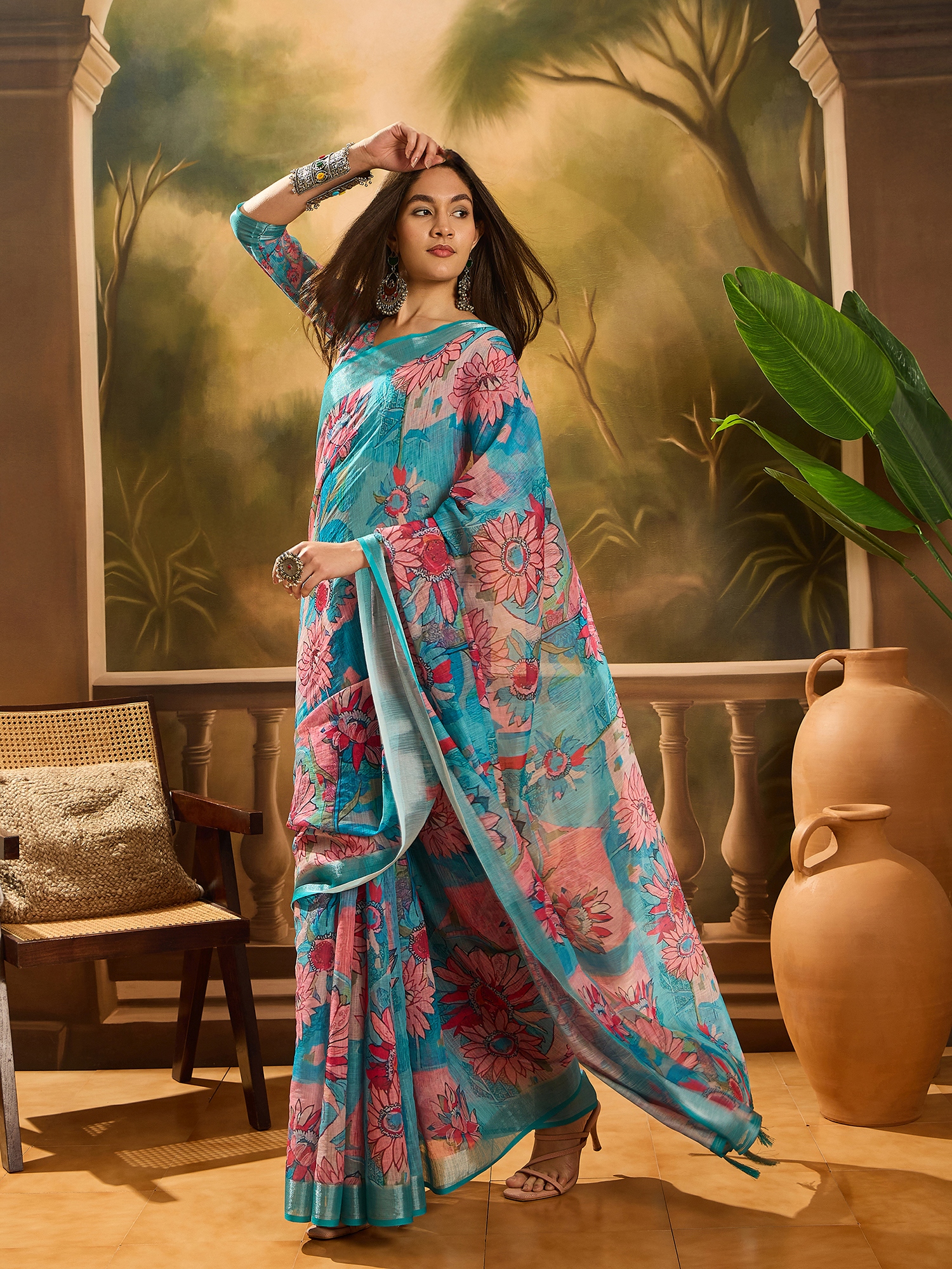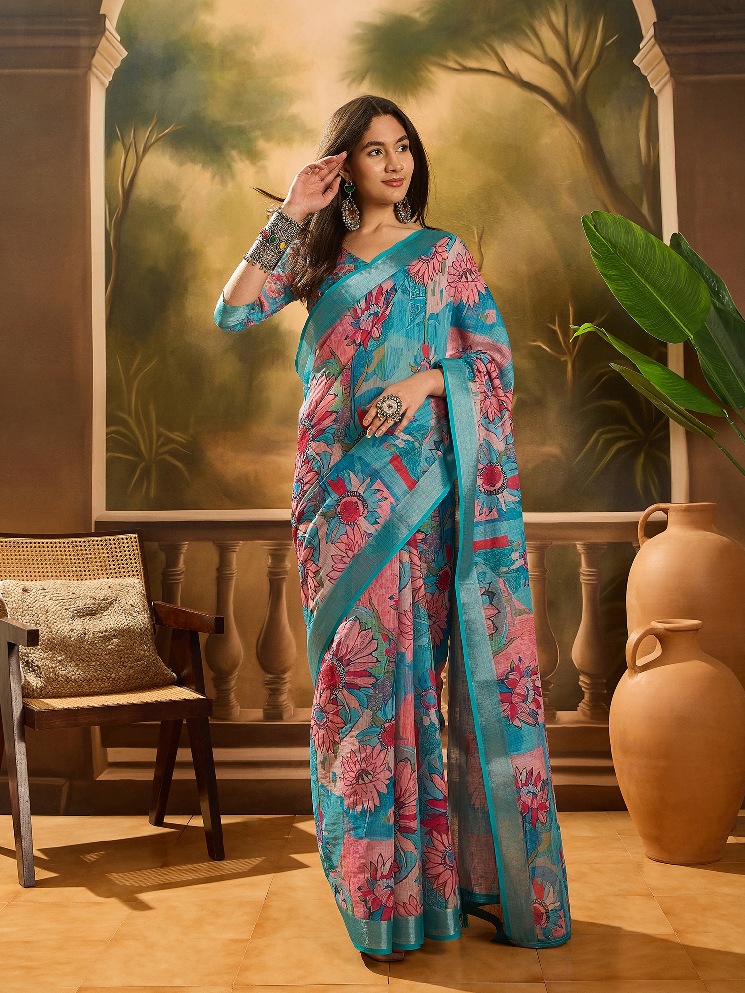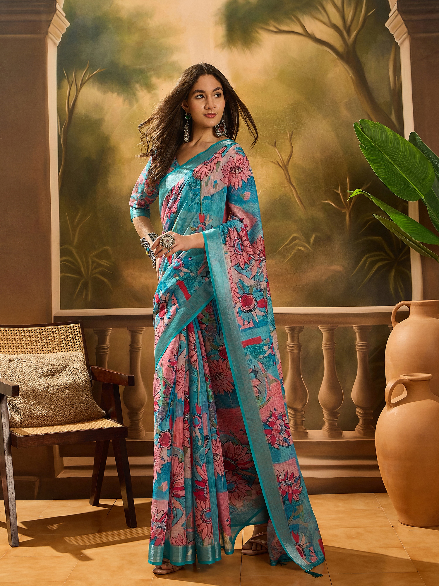 • Saree Fabric-Linen Cotton Blend ,Blouse Fabric-Linen Cotton Blend