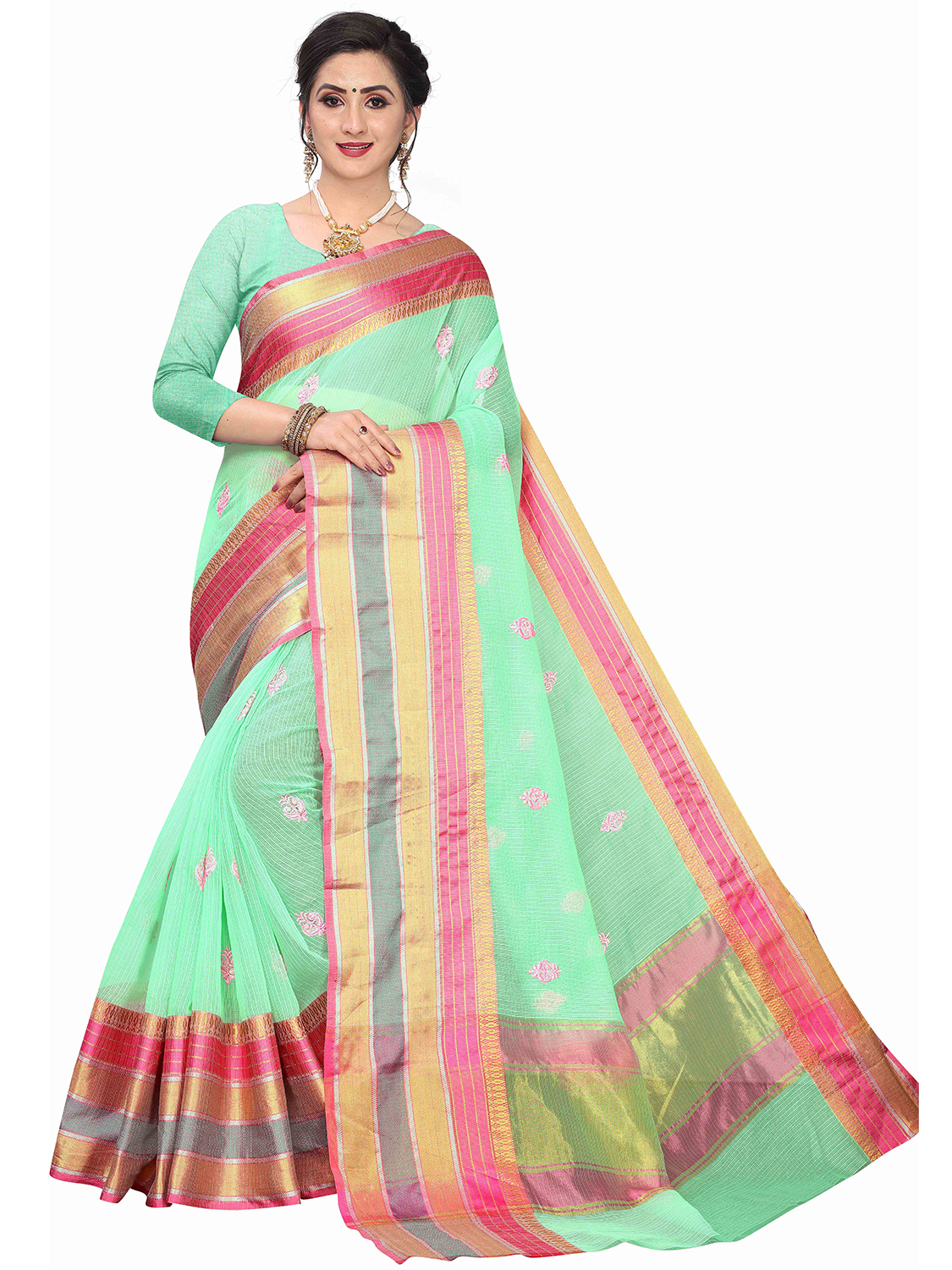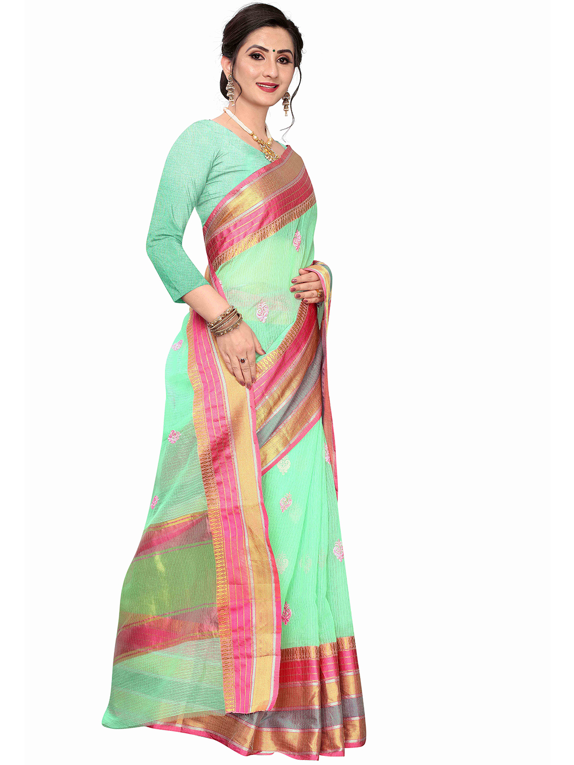 • Saree Fabric-Cotton Silk ,Blouse Fabric-Silk Blend