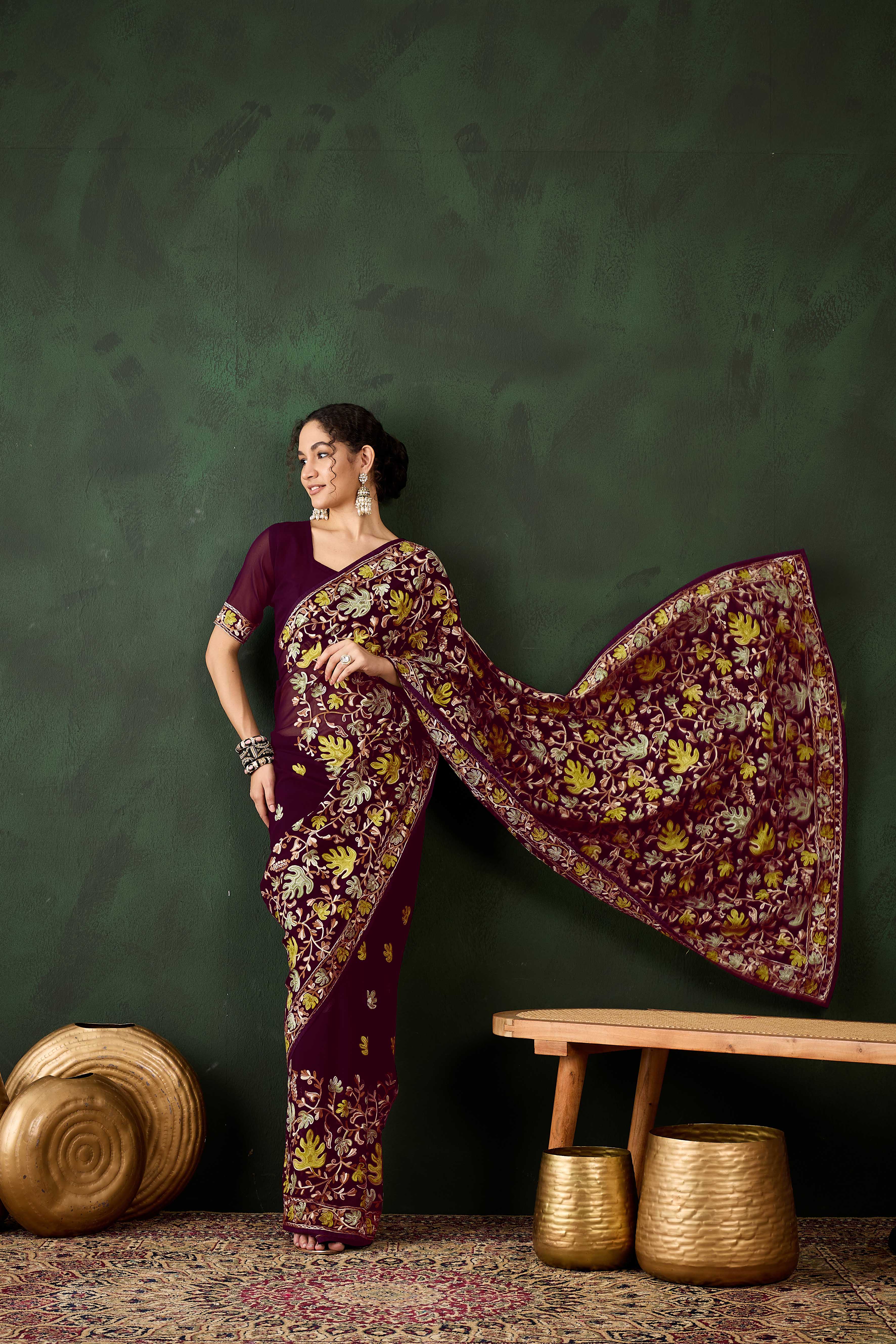 AASTHA FASHION Fashion Dream Womens Burgundy Georgette Saree | Soft & Elegant Traditional Wear