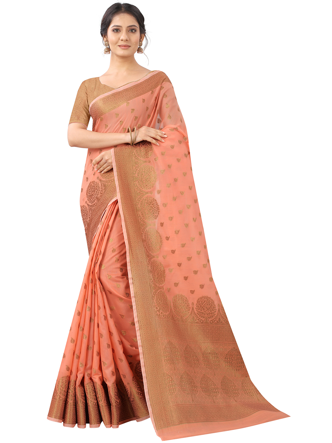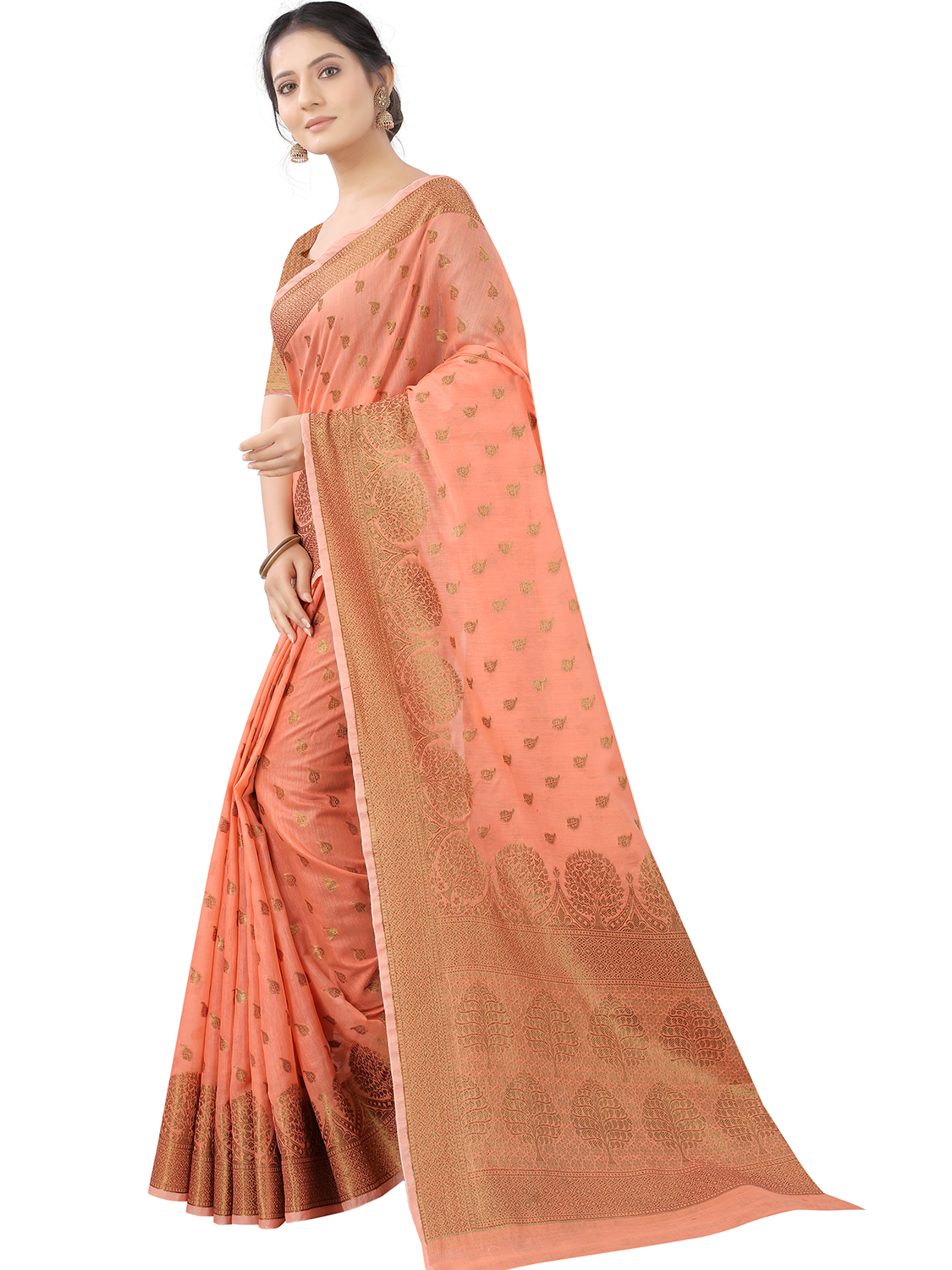 AASTHA FASHION Fashion Dream Womens Coral Orange Cotton Silk Saree | Soft & Elegant Traditional Wear