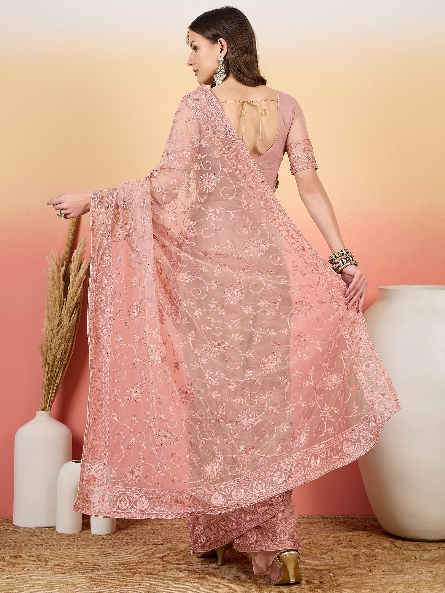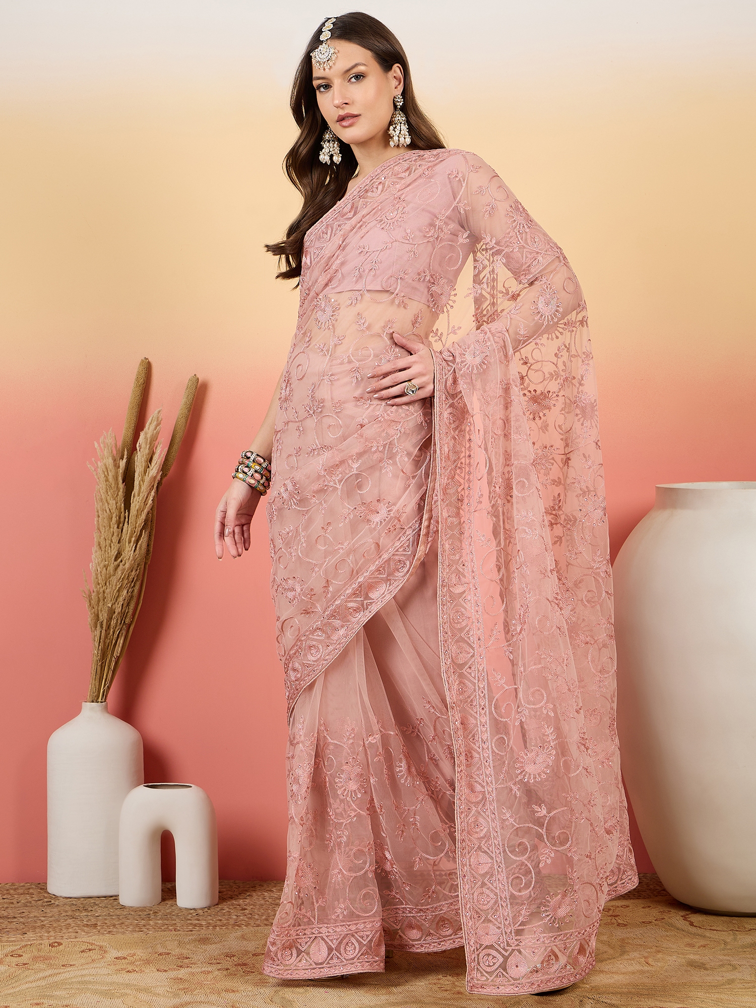 AASTHA FASHION Fashion Dream Womens Dusty Pink Net Saree | Soft & Elegant Traditional Wear