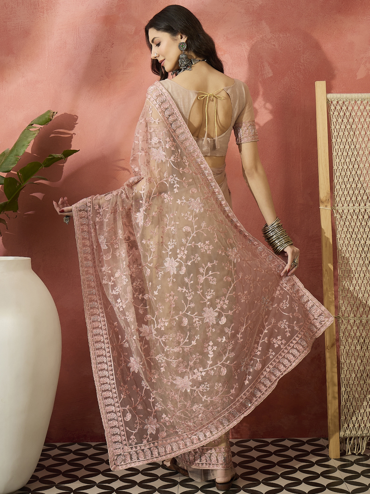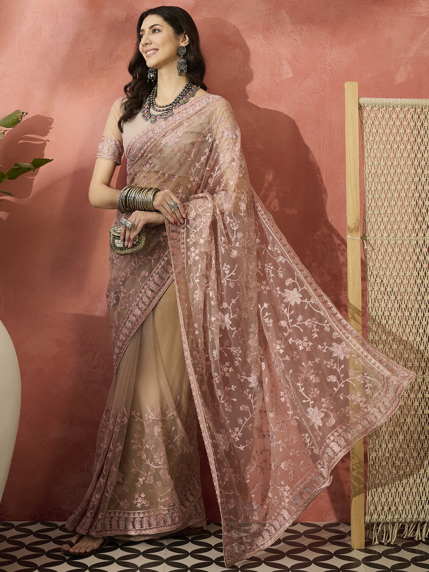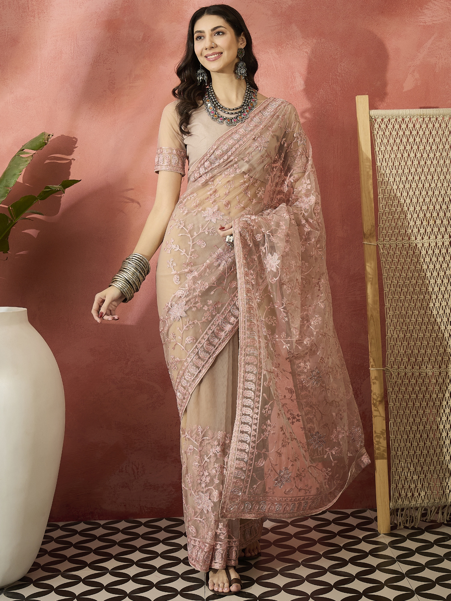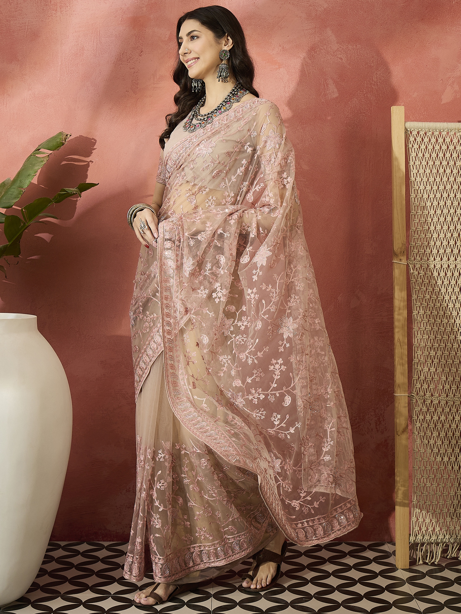 AASTHA FASHION Fashion Dream Womens Dusty Pink Net Saree | Soft & Elegant Traditional Wear
