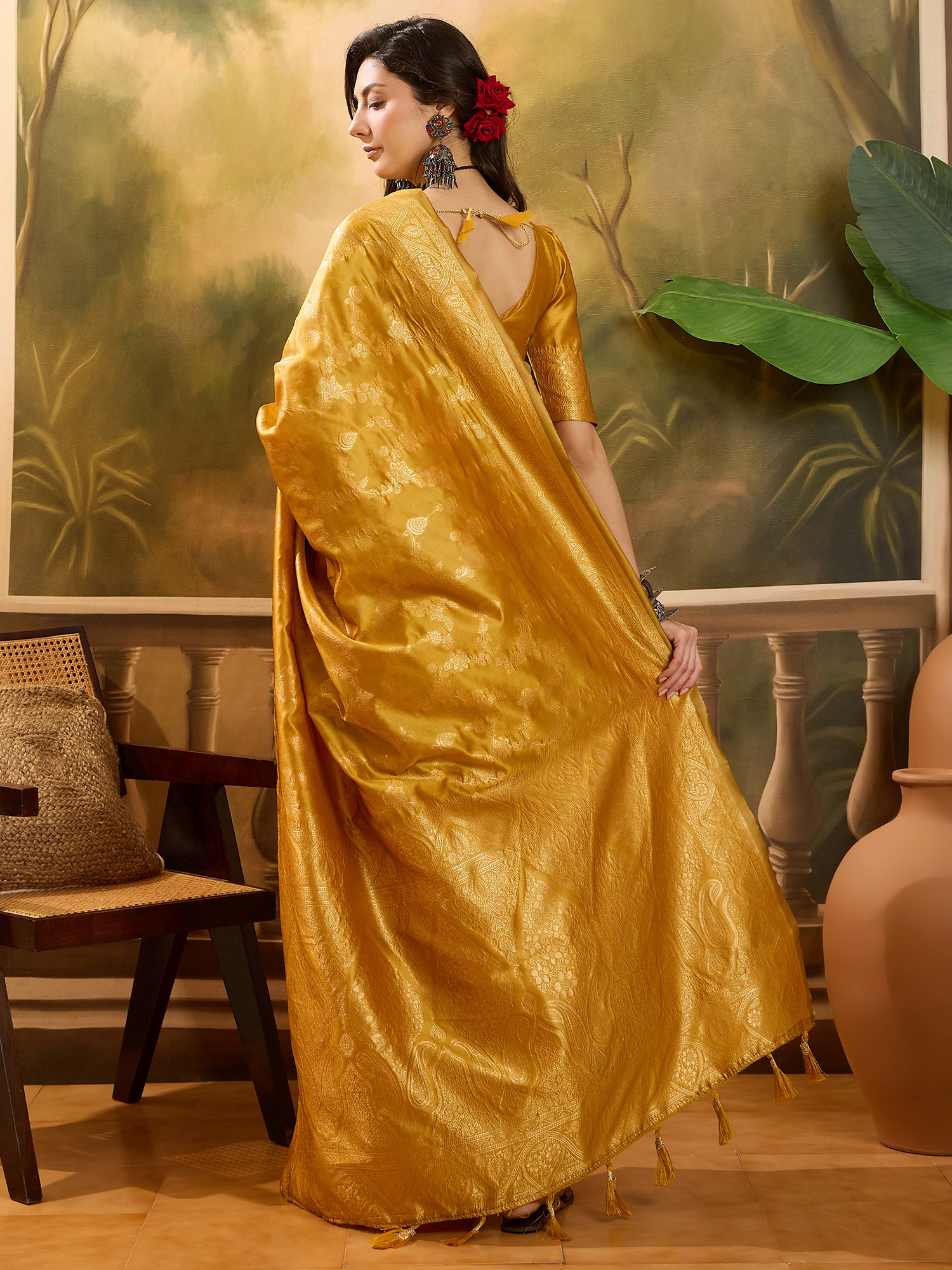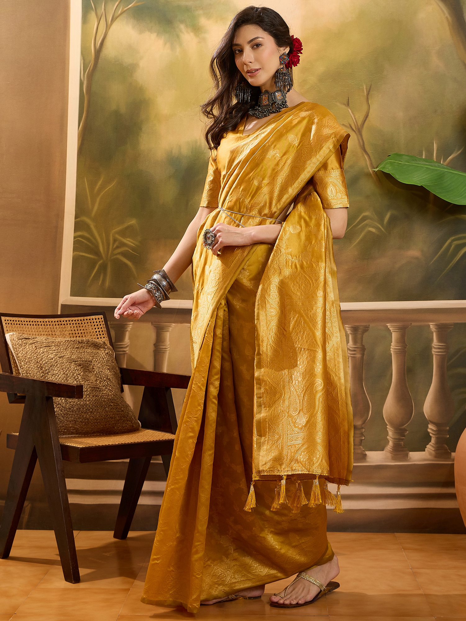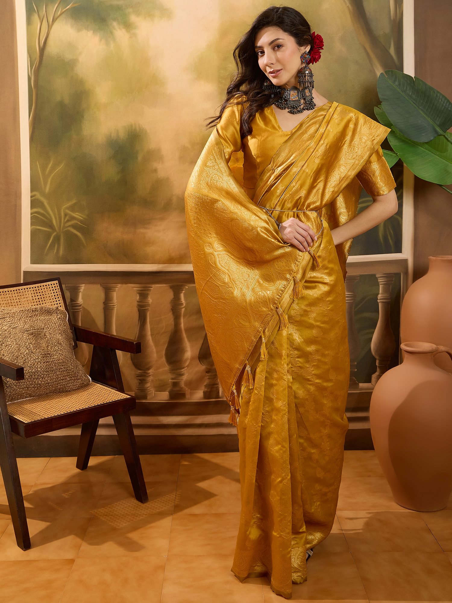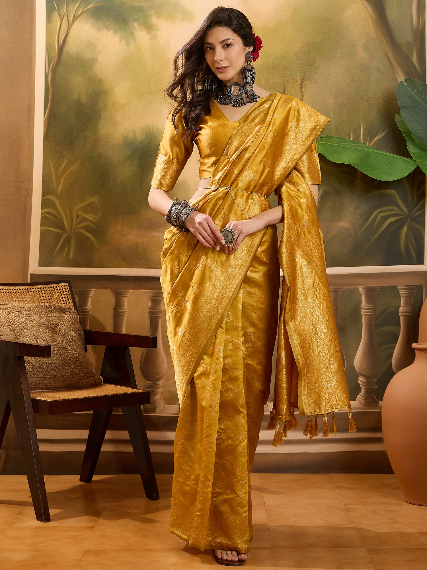 AASTHA FASHION Fashion Dream Womens Gold Banarasi Jacquard Saree | Soft & Elegant Traditional Wear