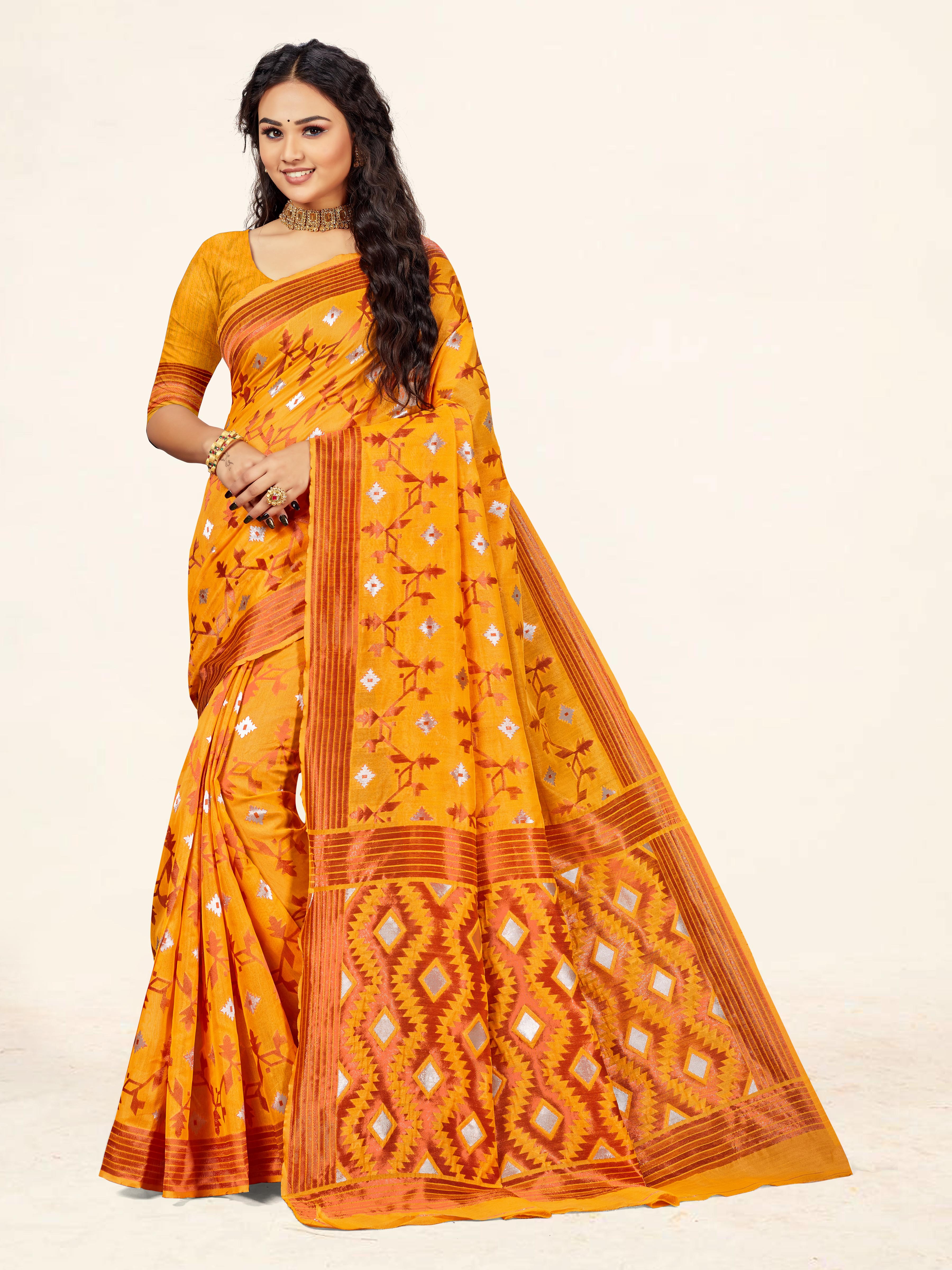 AASTHA FASHION Fashion Dream Womens Gold Cotton Saree | Soft & Elegant Traditional Wear