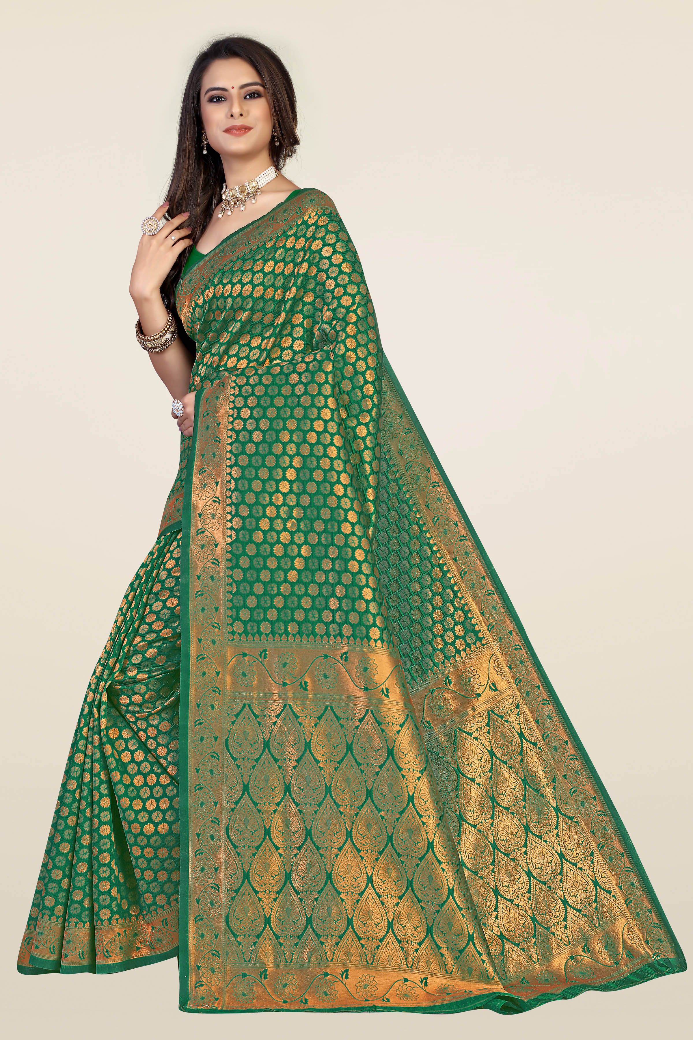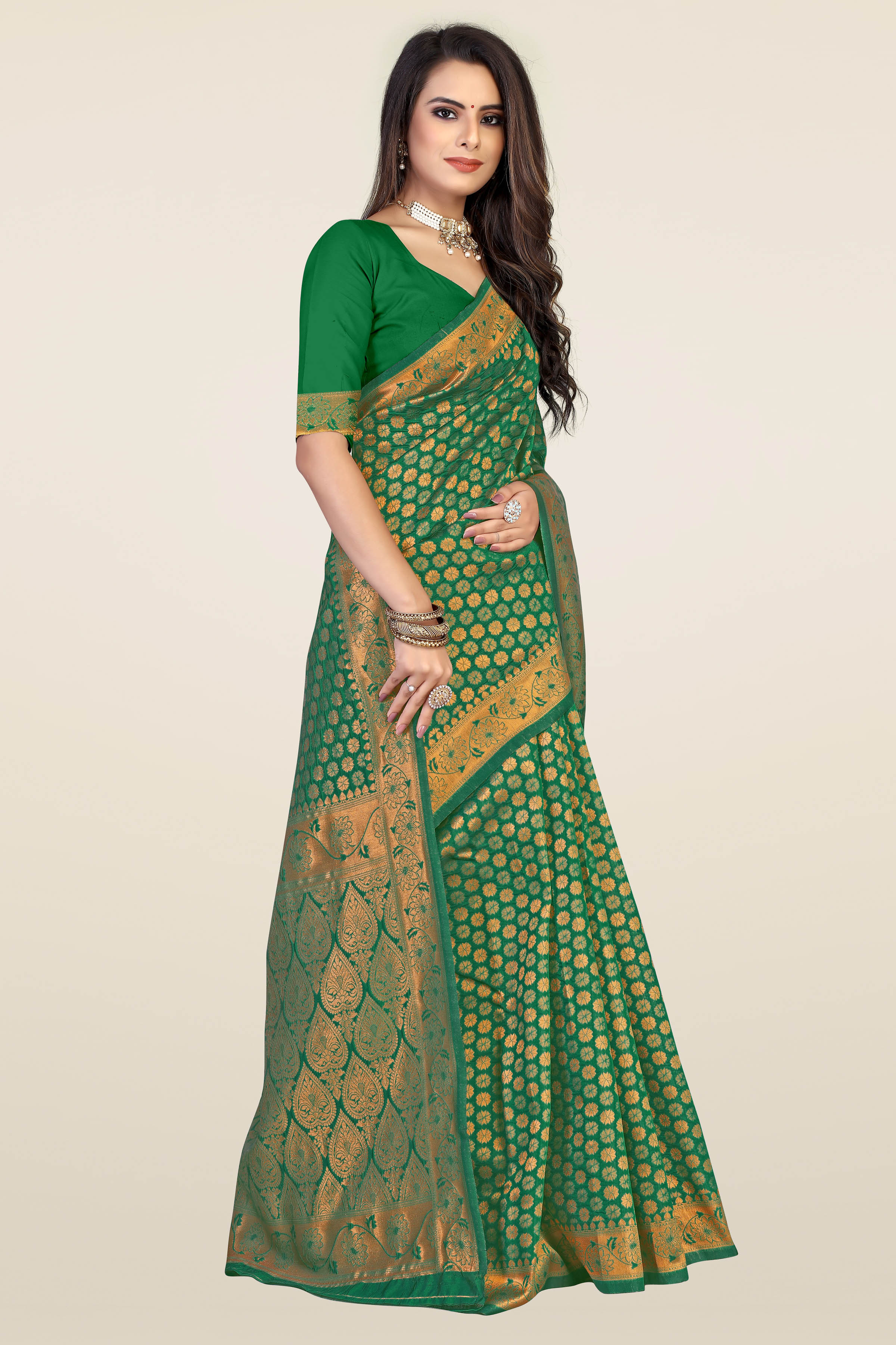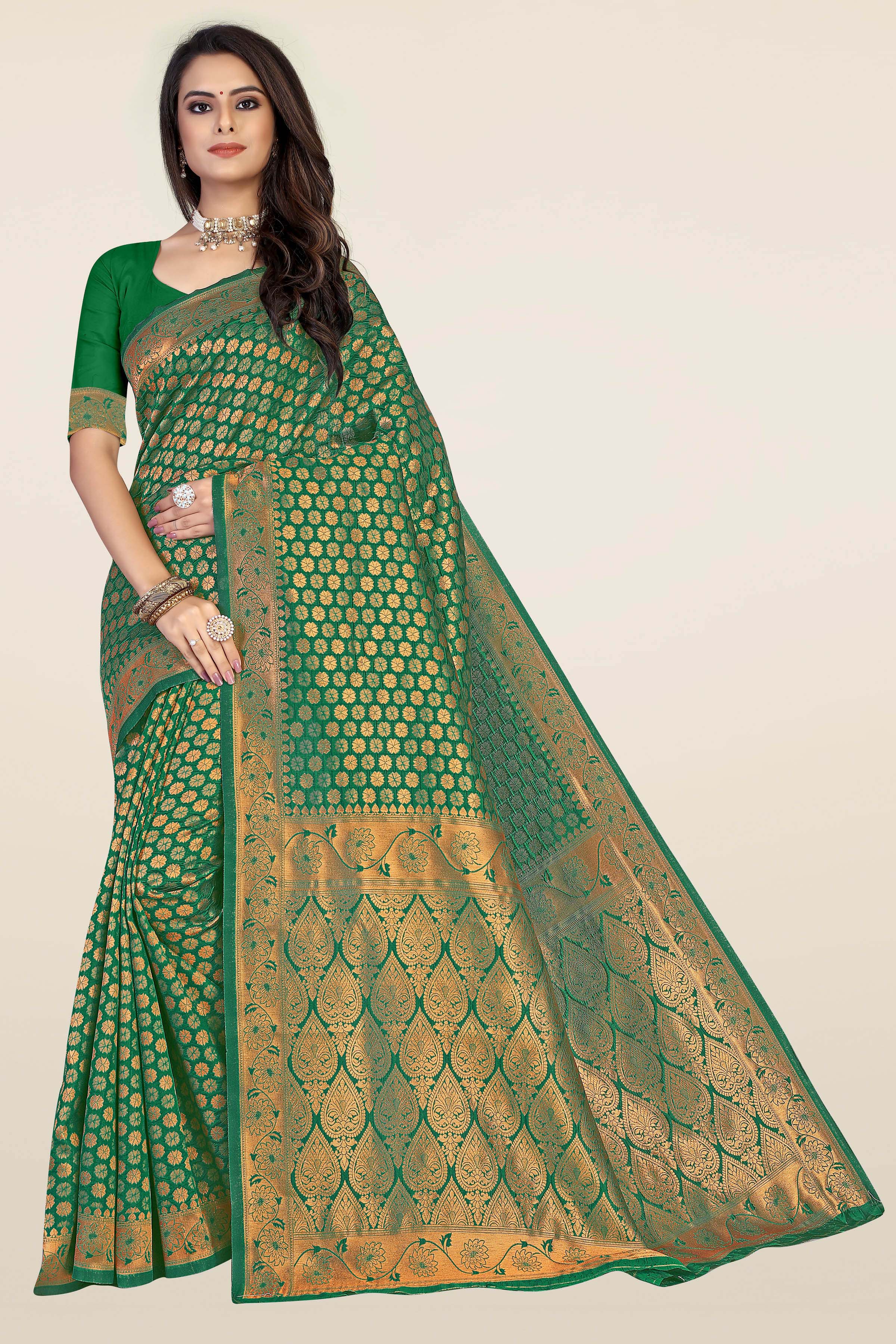 AASTHA FASHION Fashion Dream Womens Green Banarasi Silk Saree | Soft & Elegant Traditional Wear