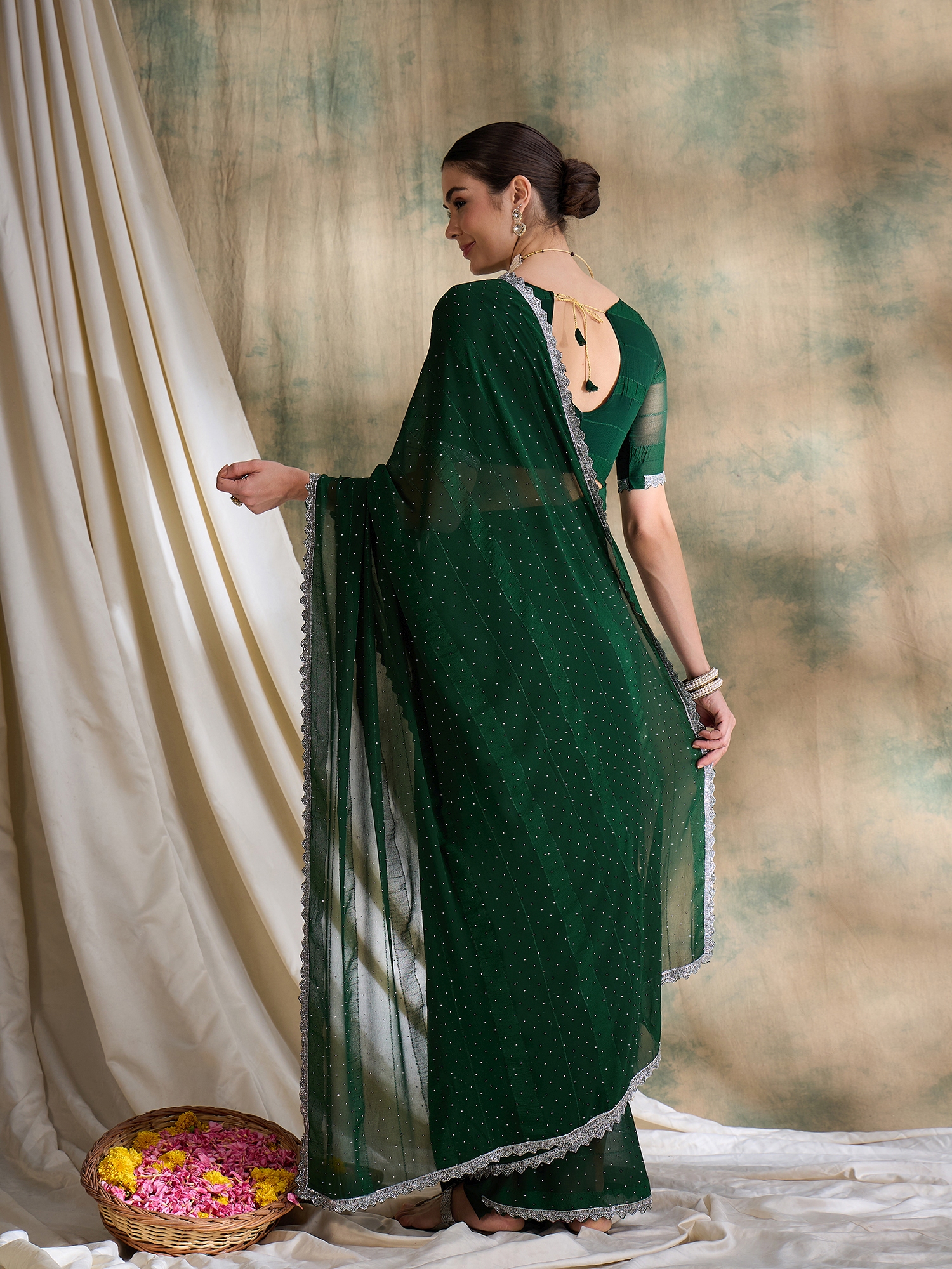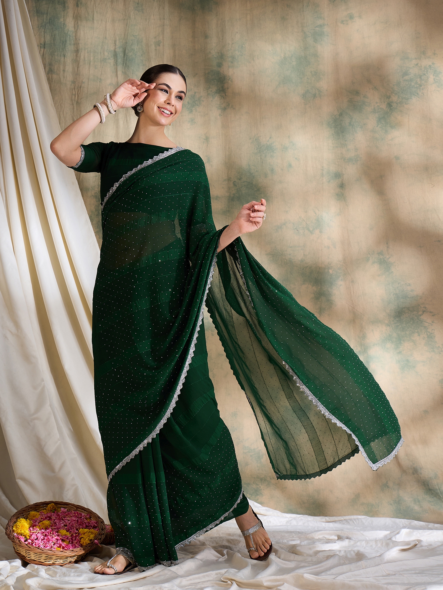 AASTHA FASHION Fashion Dream Womens Green Vichitra Silk Saree | Soft & Elegant Traditional Wear