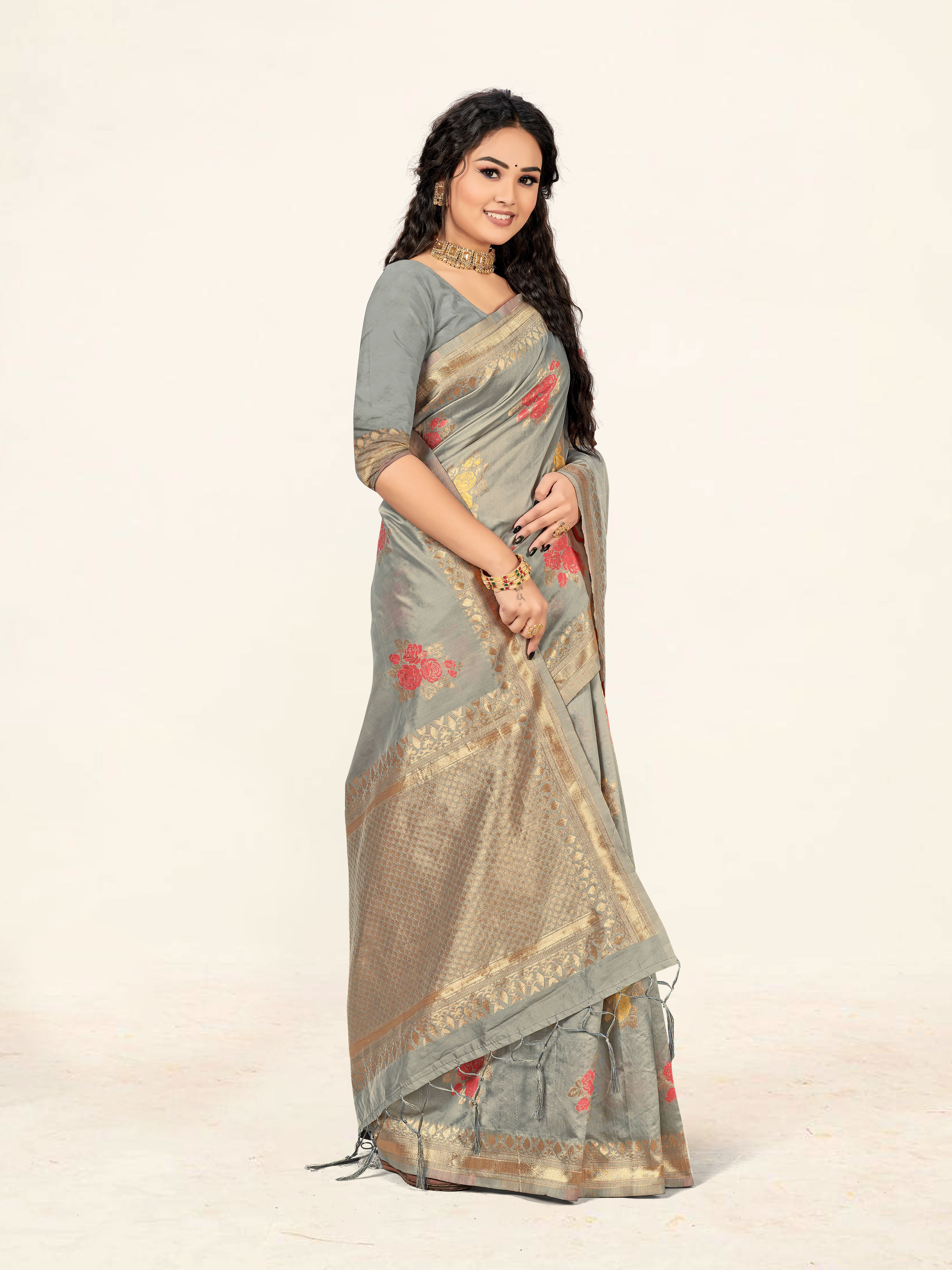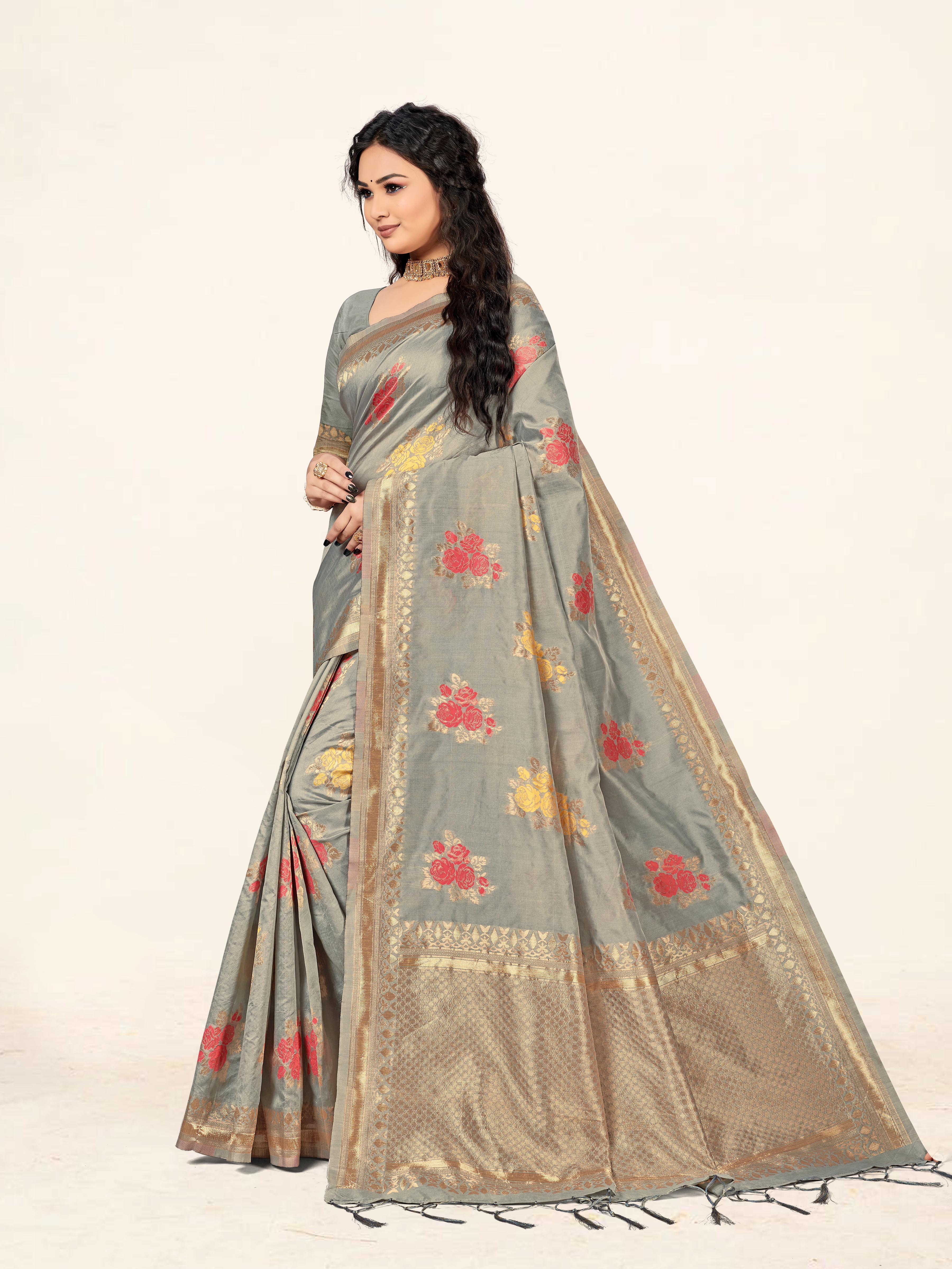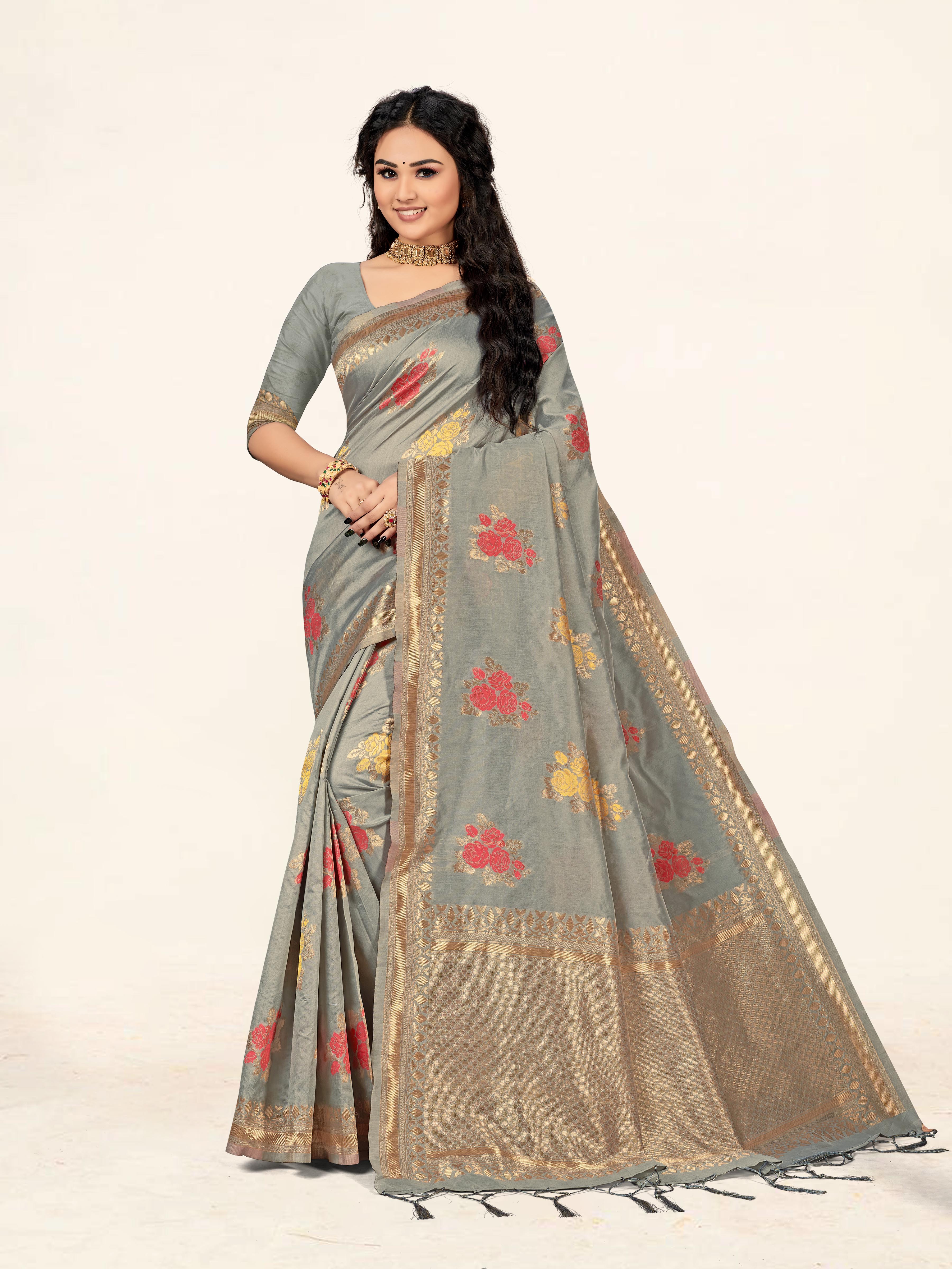 AASTHA FASHION Fashion Dream Womens Grey Cotton Saree | Soft & Elegant Traditional Wear