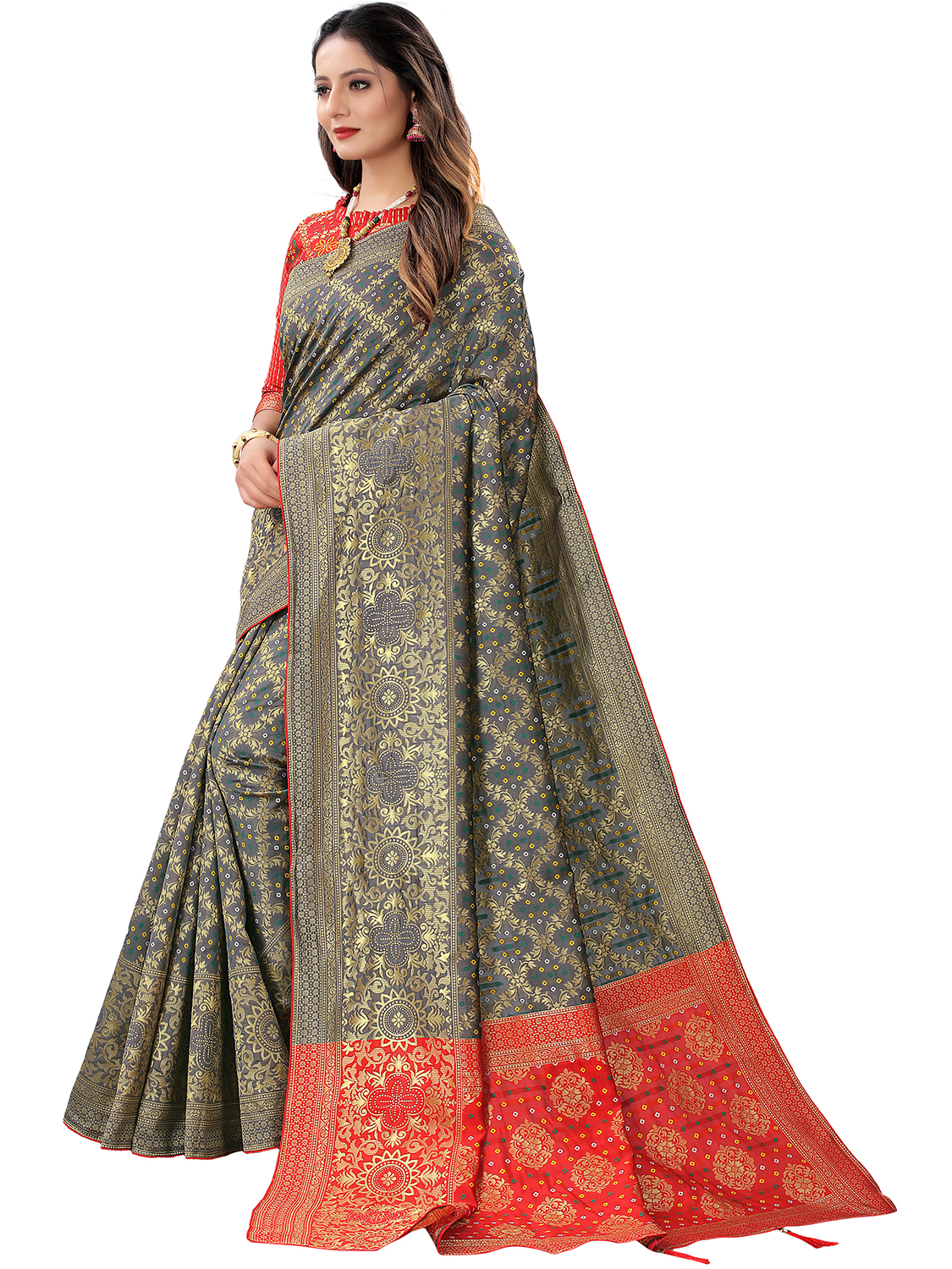 AASTHA FASHION Fashion Dream Womens Grey Cotton Silk Blend Saree | Soft & Elegant Traditional Wear