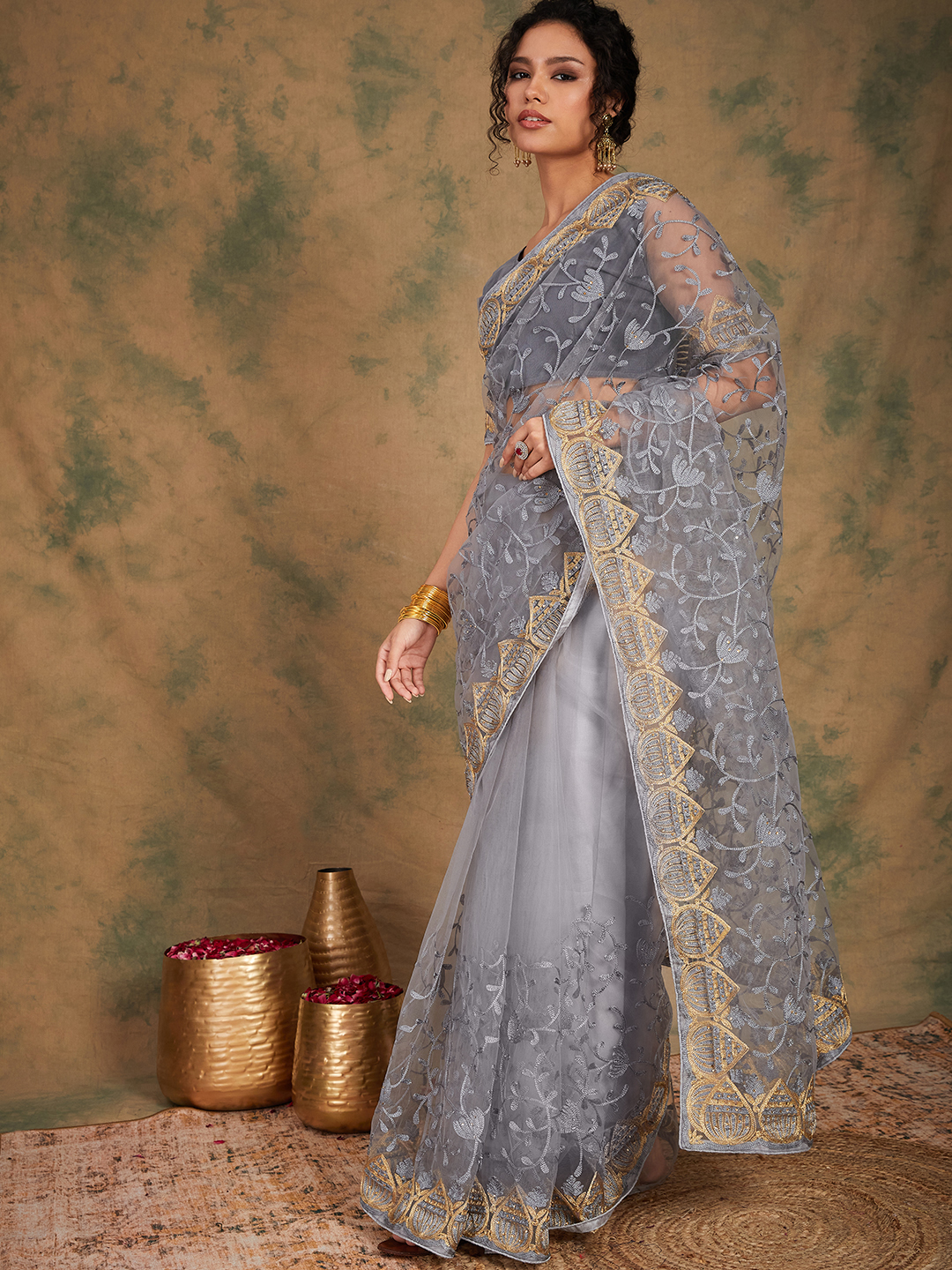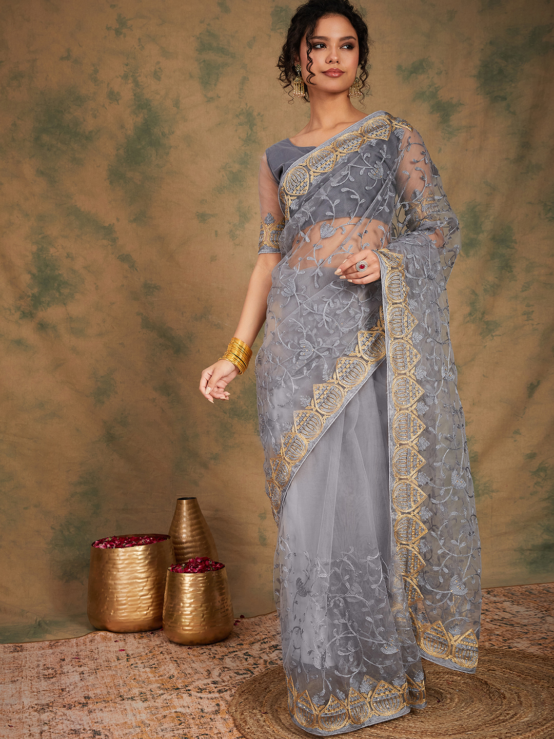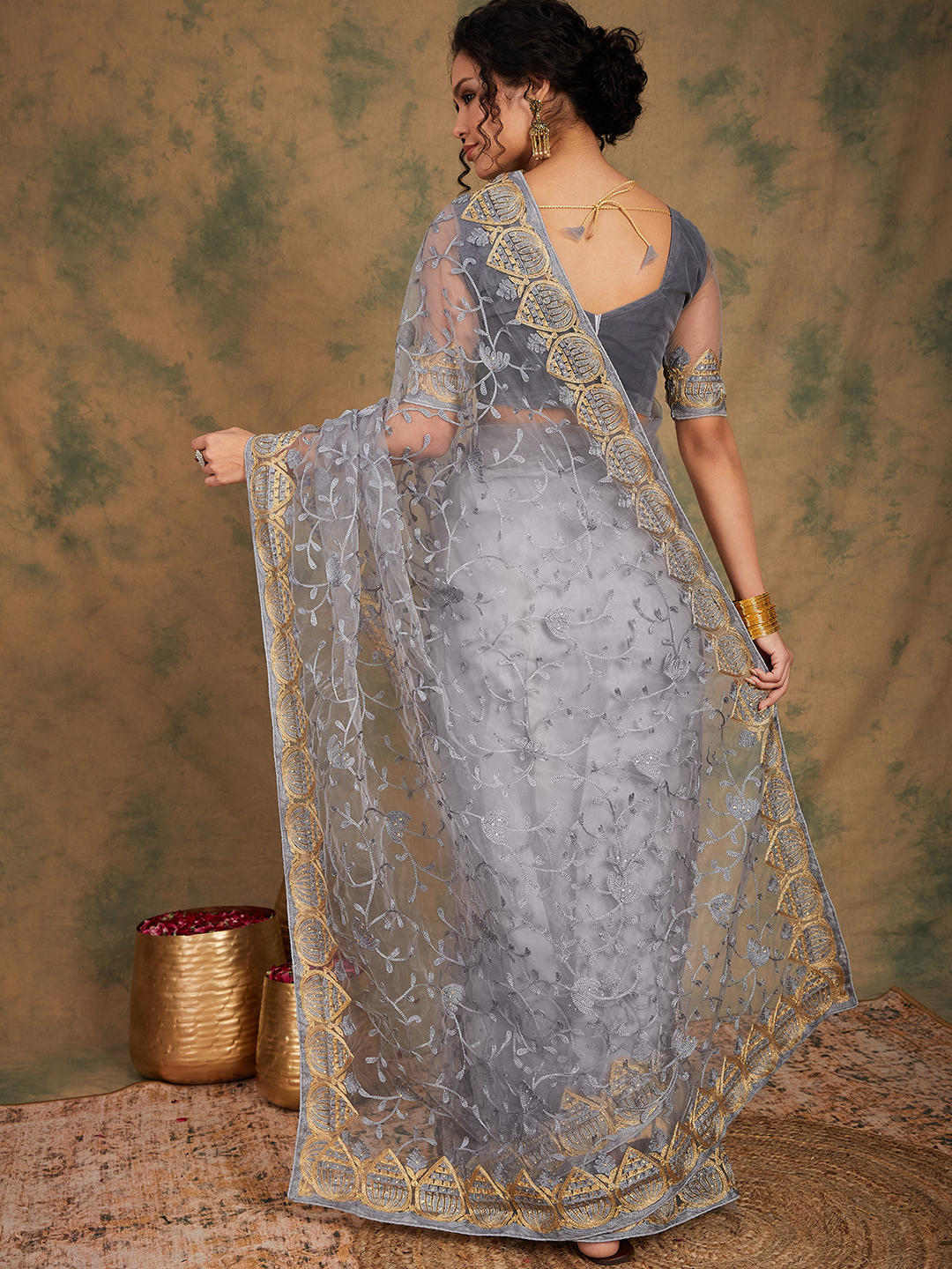 AASTHA FASHION Fashion Dream Womens Grey Net Saree | Soft & Elegant Traditional Wear