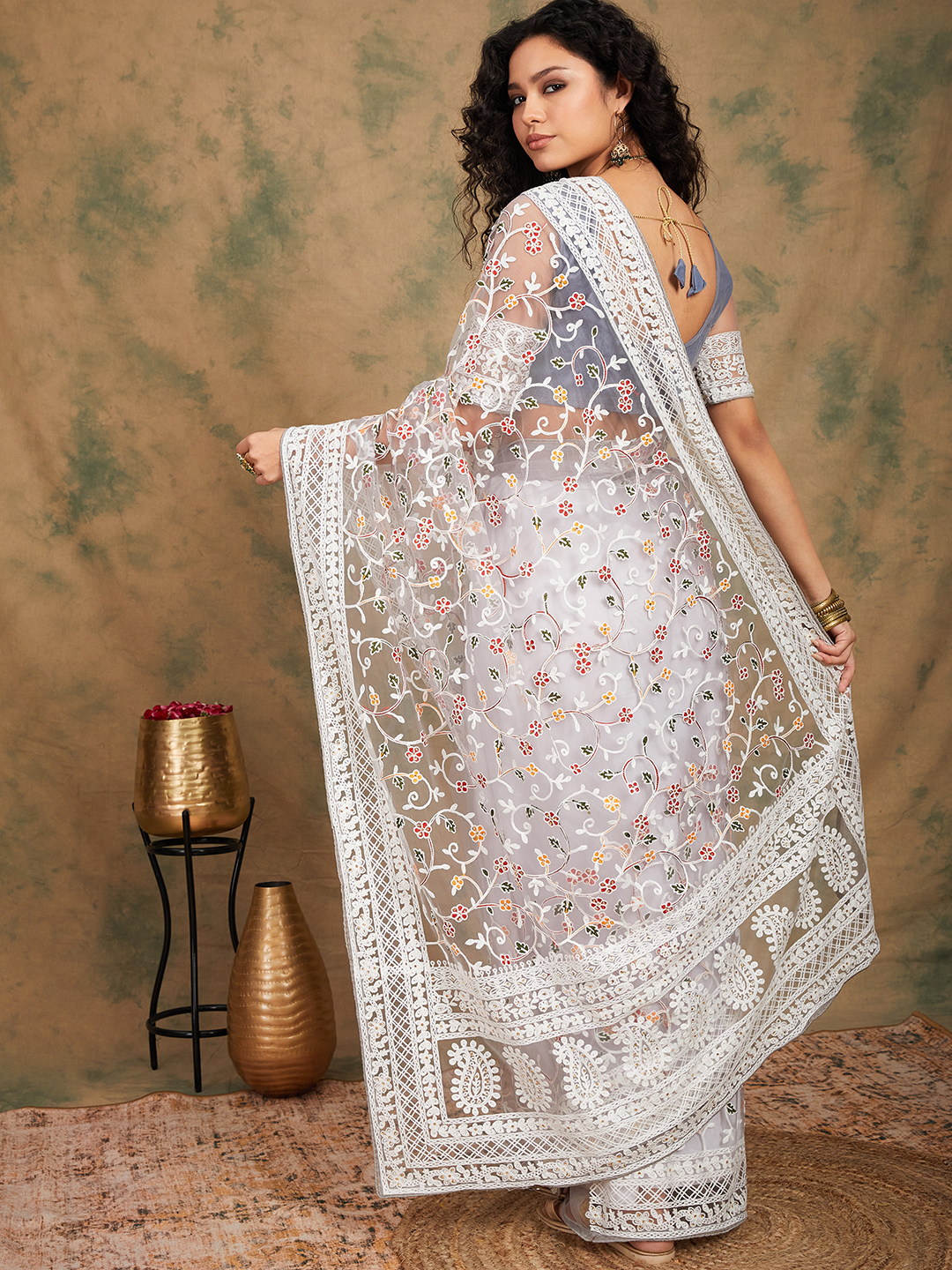AASTHA FASHION Fashion Dream Womens Grey Net Saree | Soft & Elegant Traditional Wear
