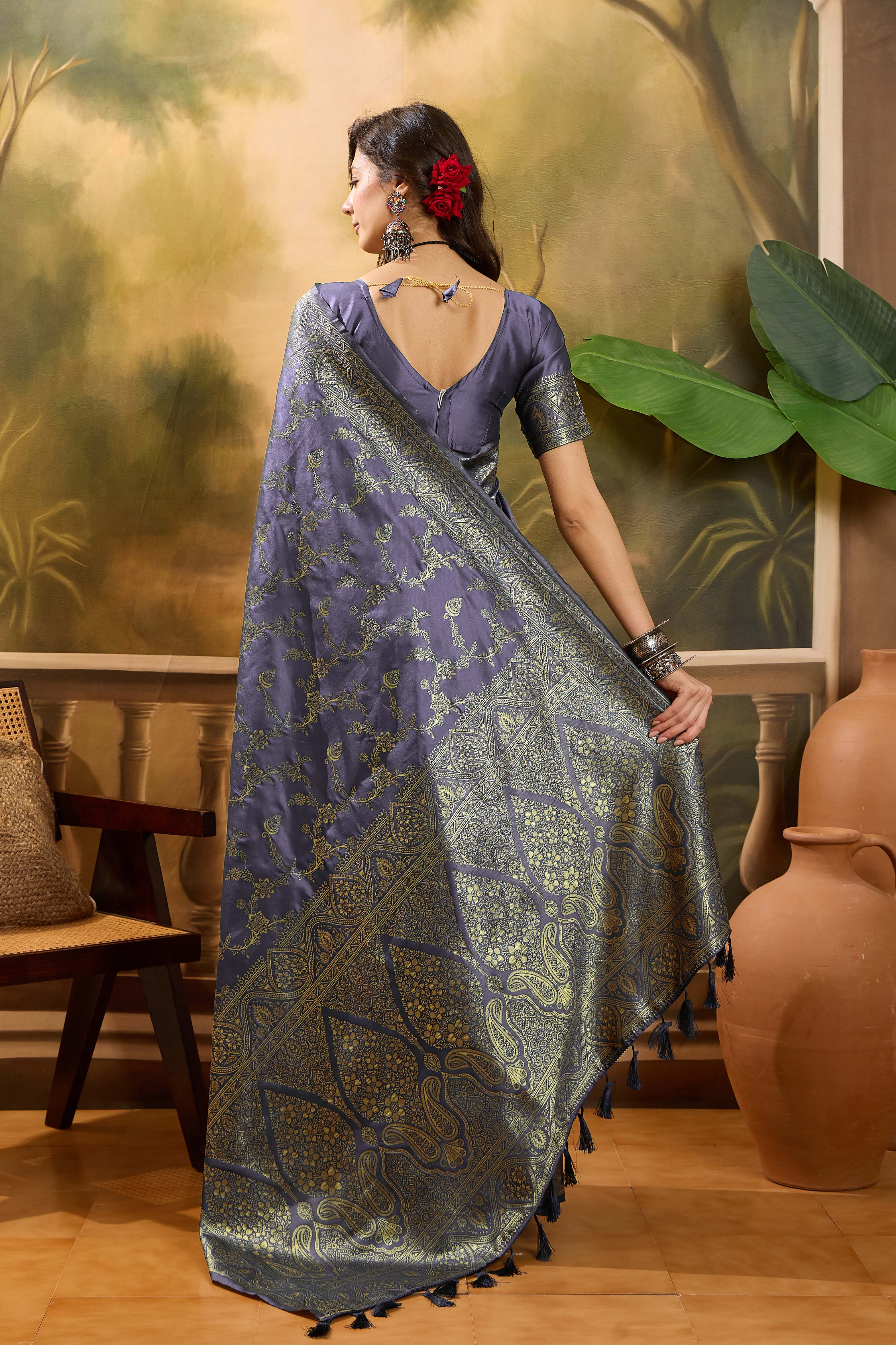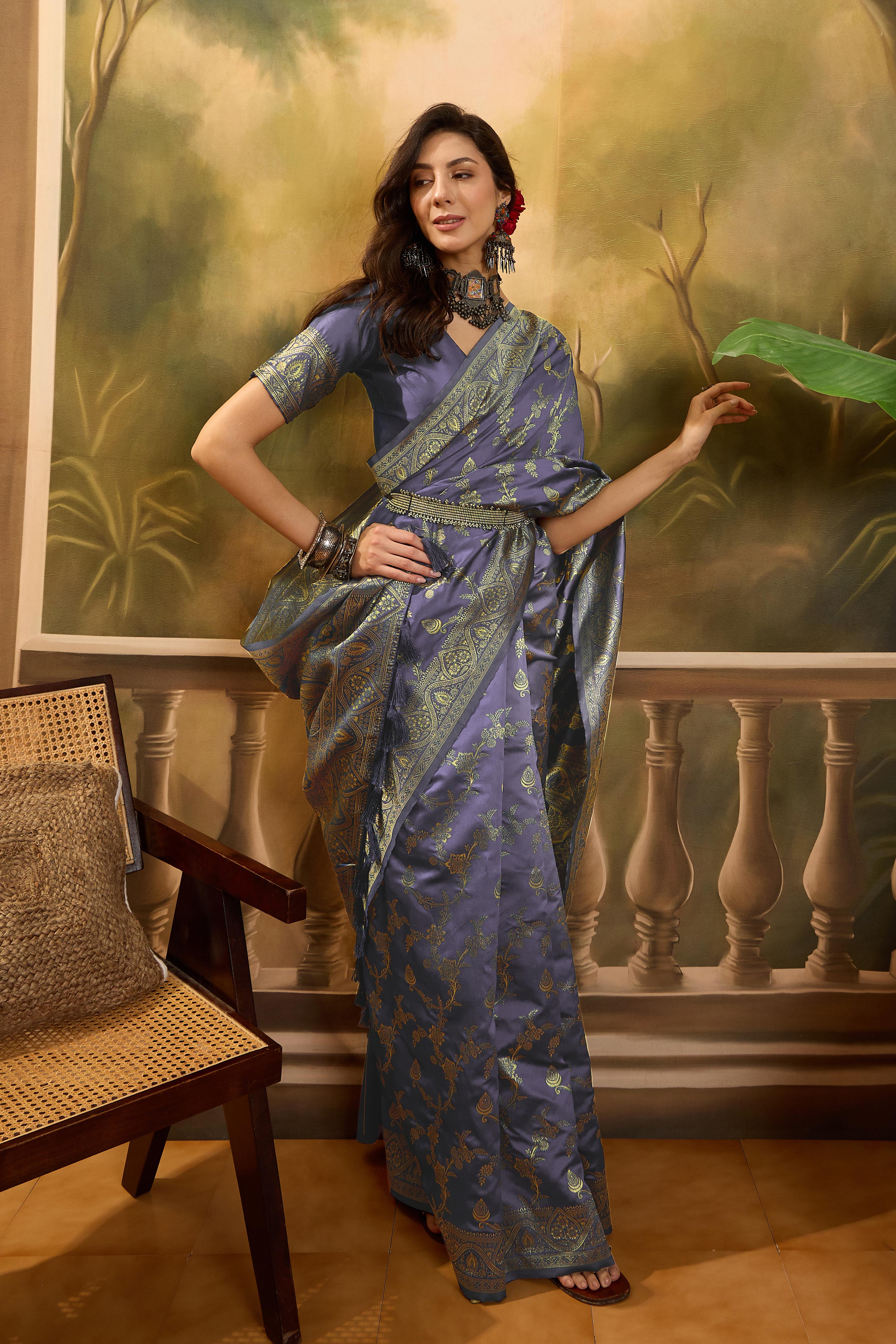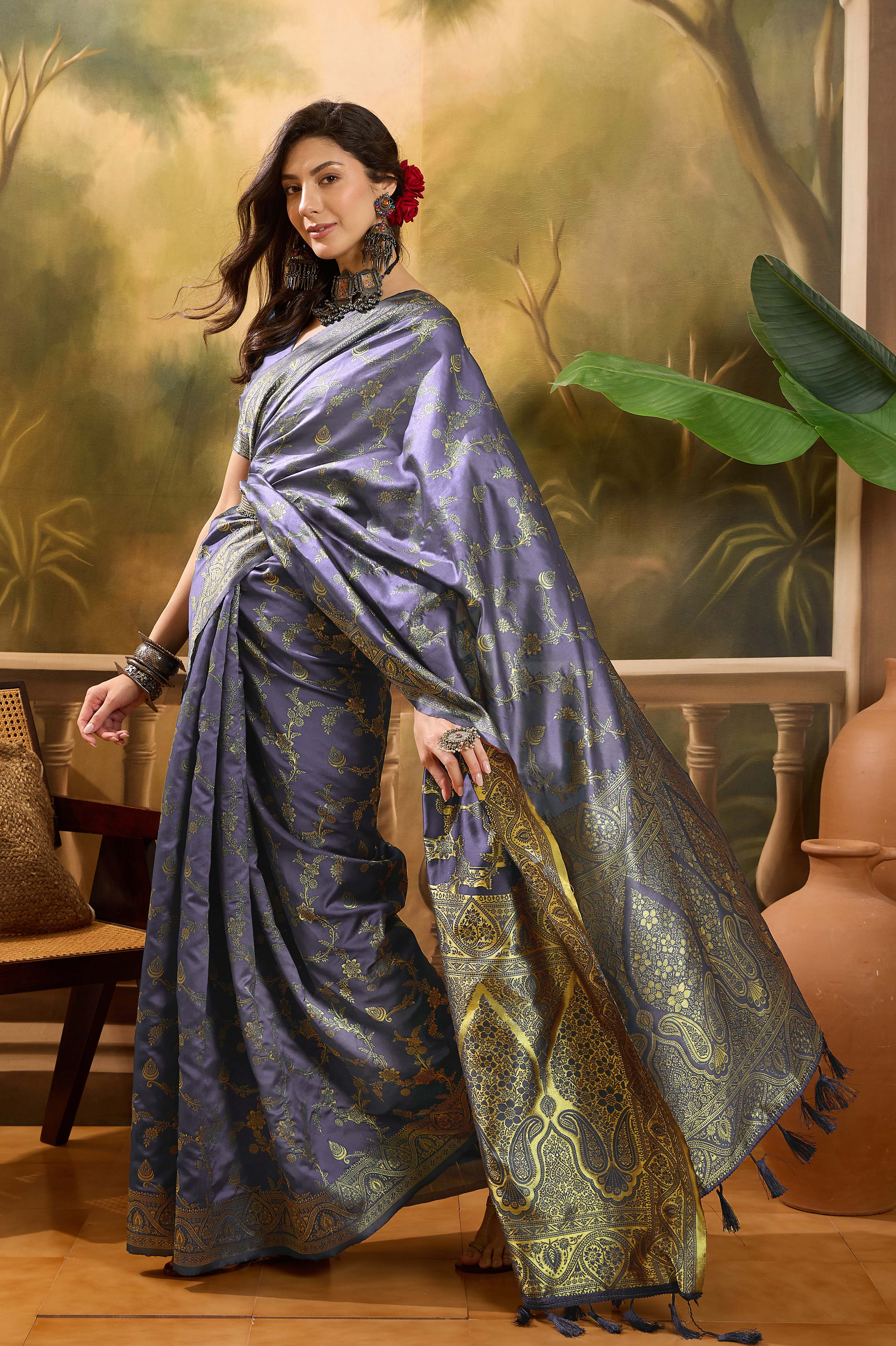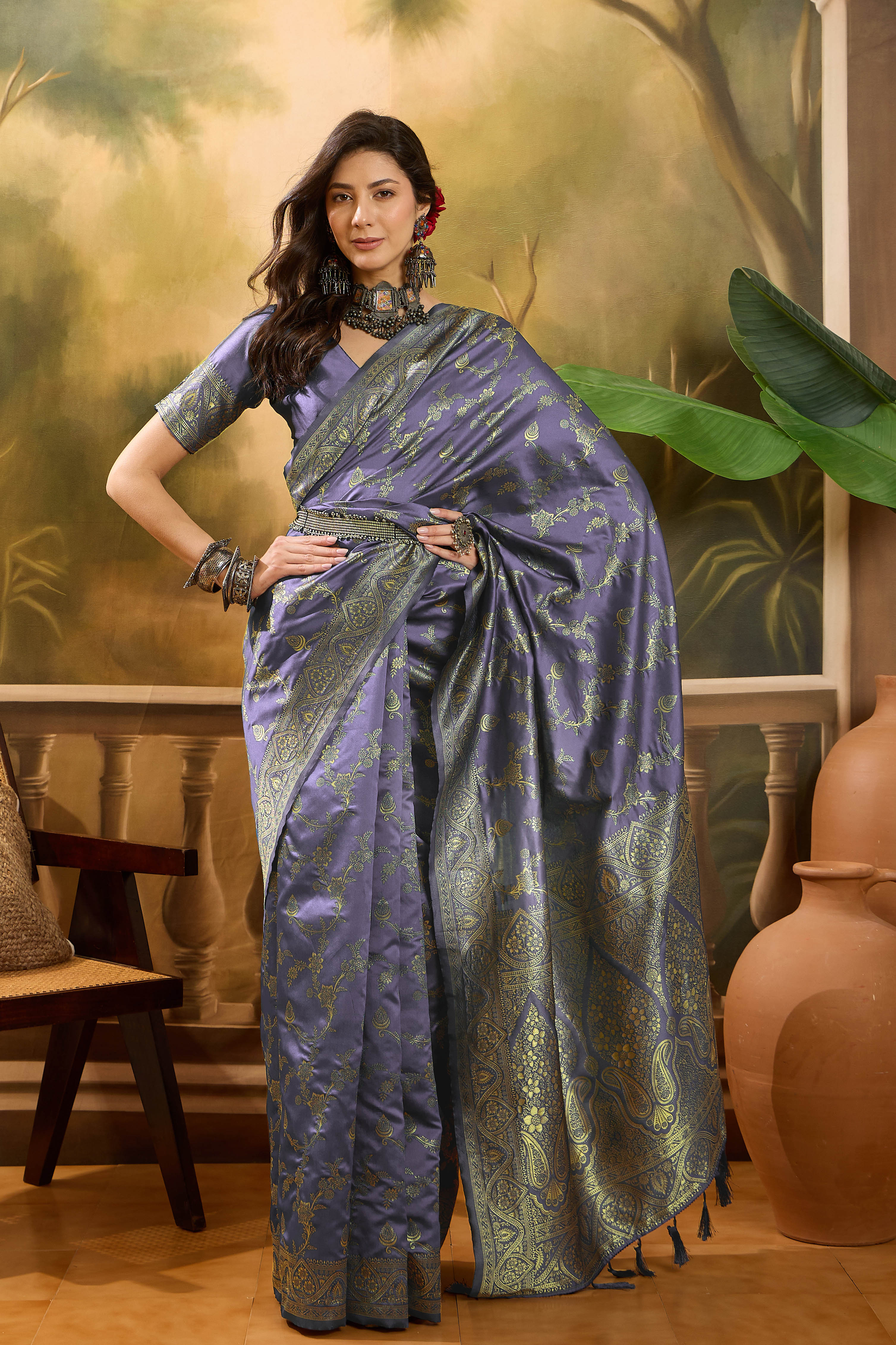 AASTHA FASHION Fashion Dream Womens Lavender Banarasi Jacquard Saree | Soft & Elegant Traditional Wear