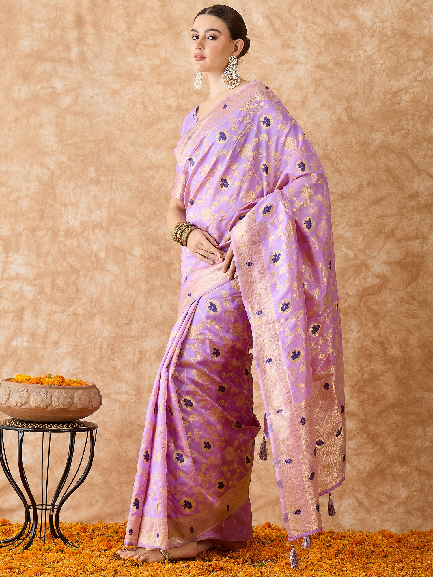 AASTHA FASHION Fashion Dream Womens Lavender Banarasi Silk Saree | Soft & Elegant Traditional Wear