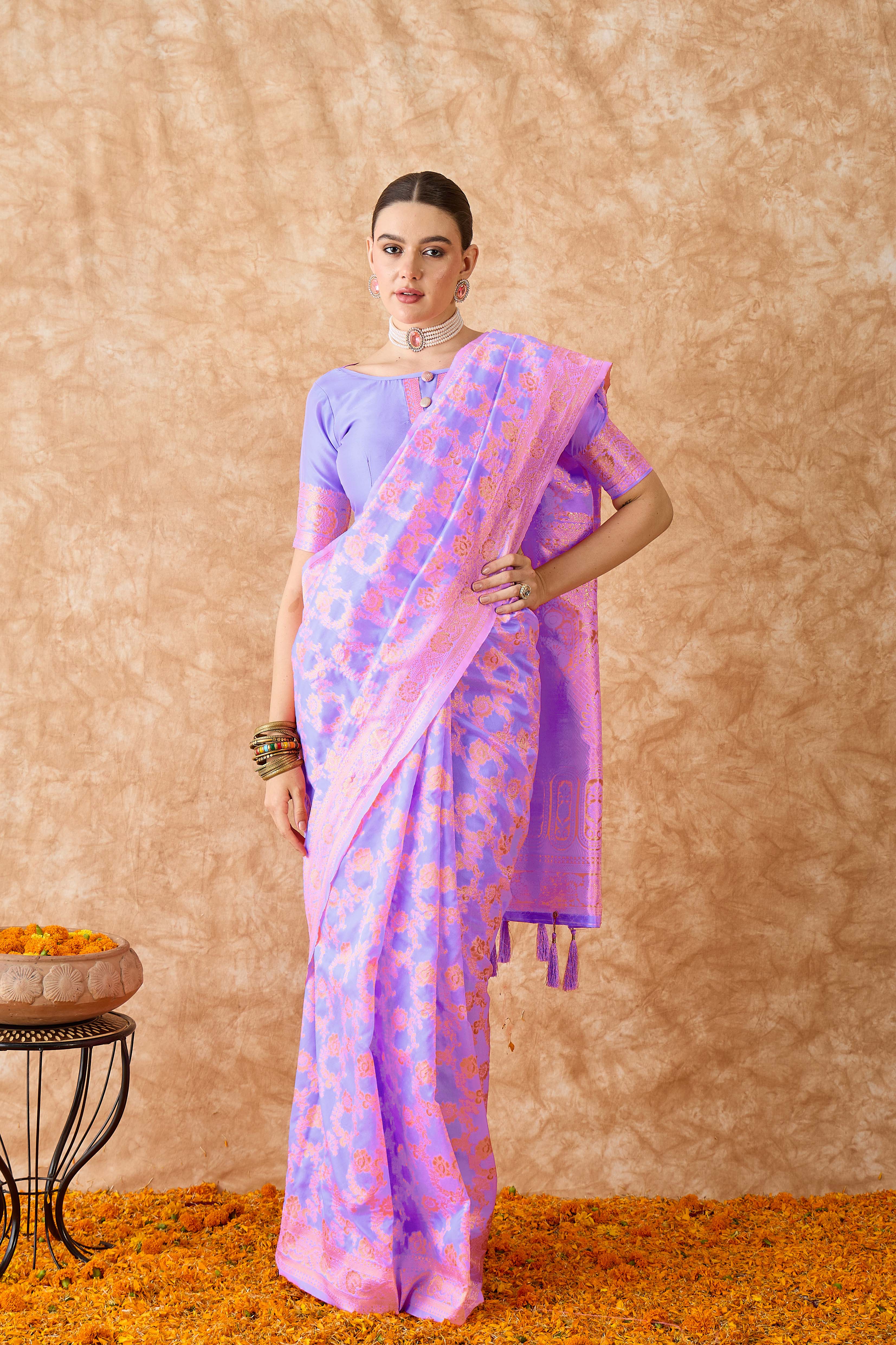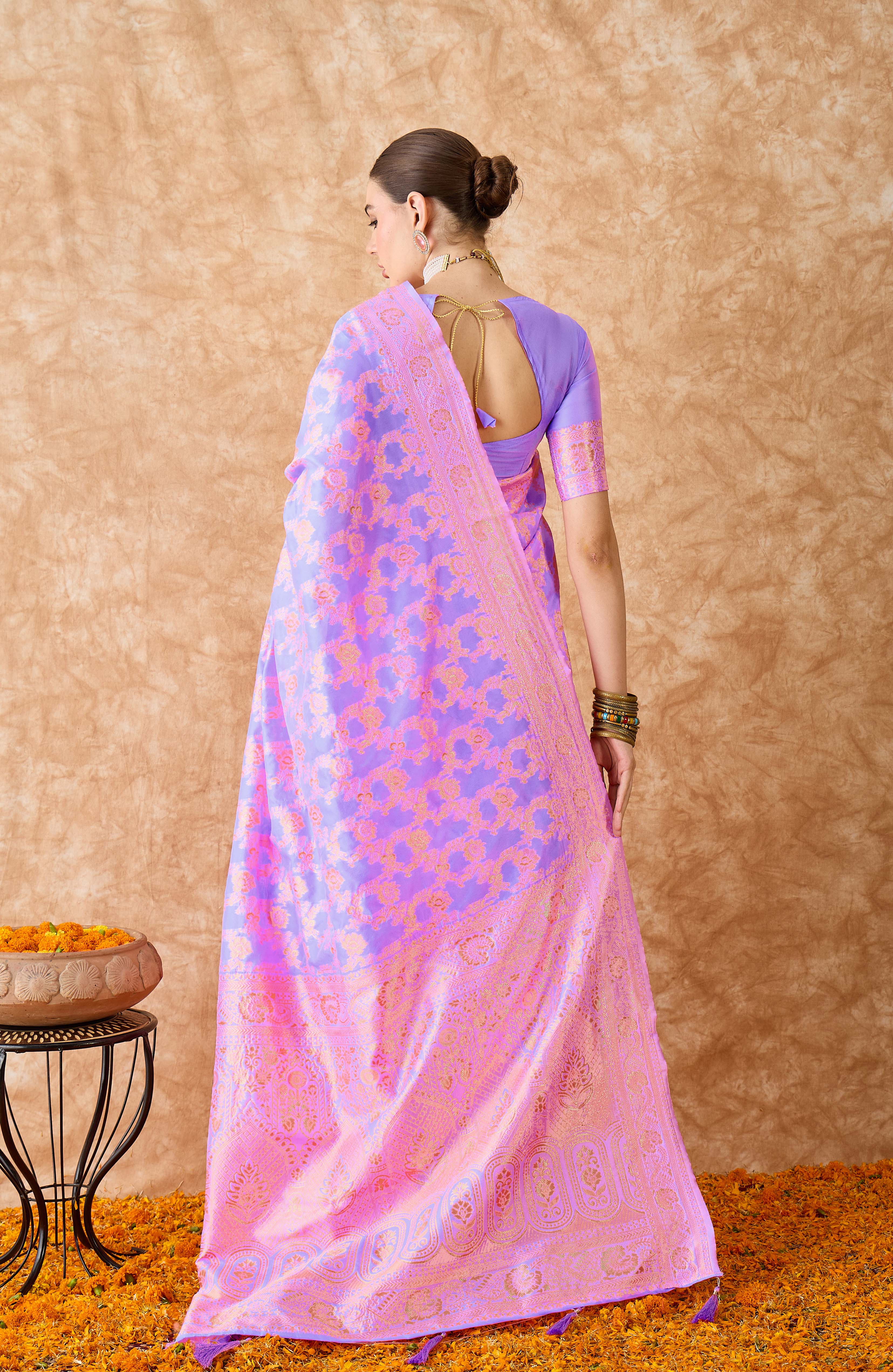 AASTHA FASHION Fashion Dream Womens Lavender Banarasi Silk Saree | Soft & Elegant Traditional Wear