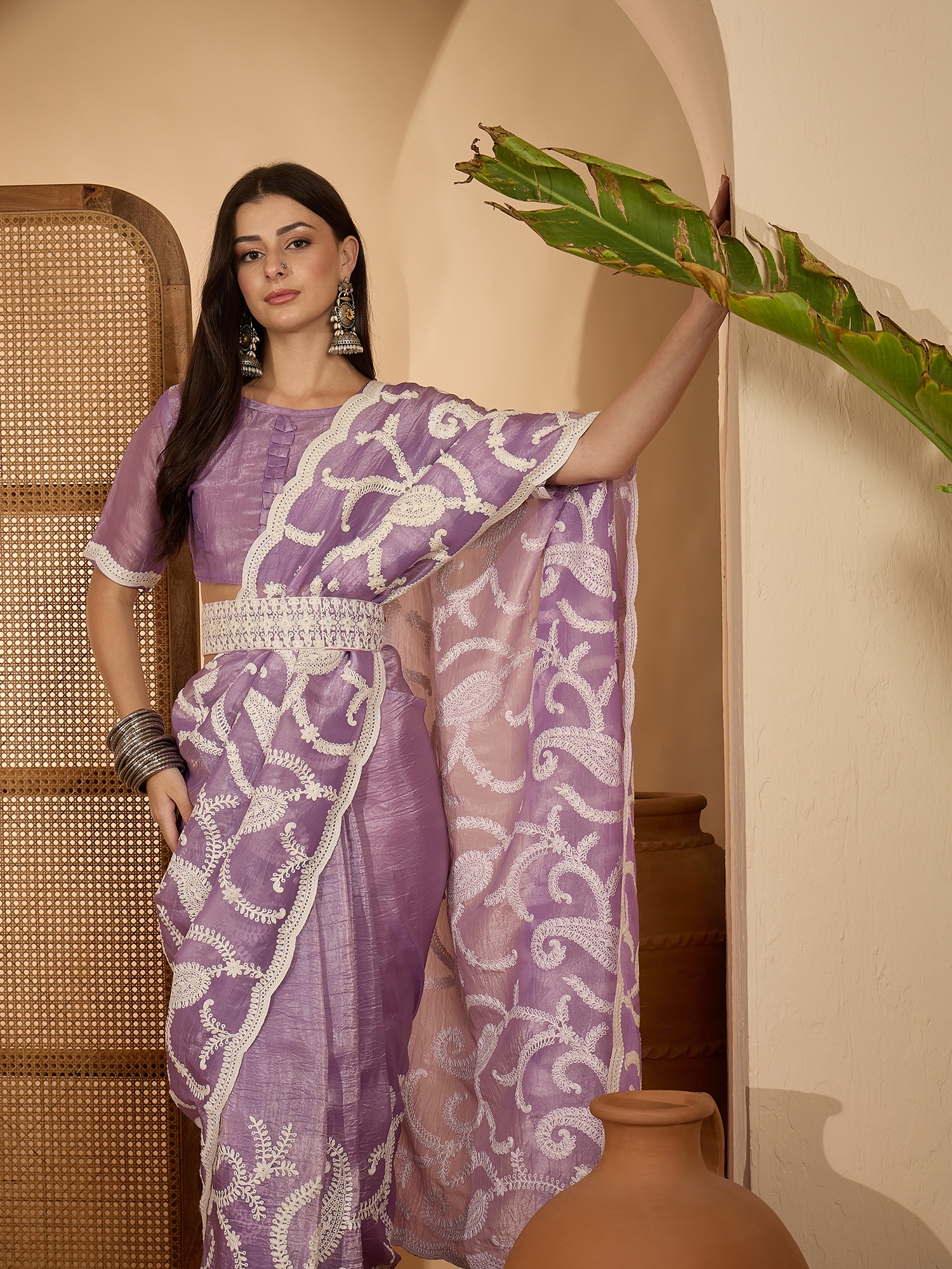AASTHA FASHION Fashion Dream Womens Lavender Gold Crush Saree | Soft & Elegant Traditional Wear