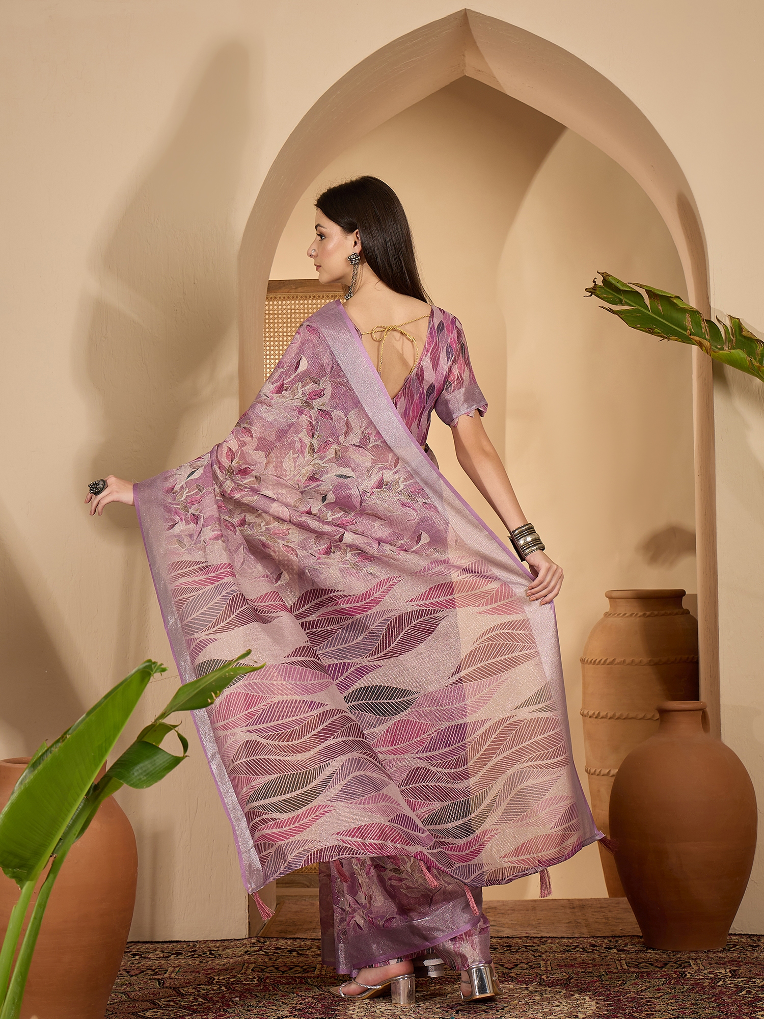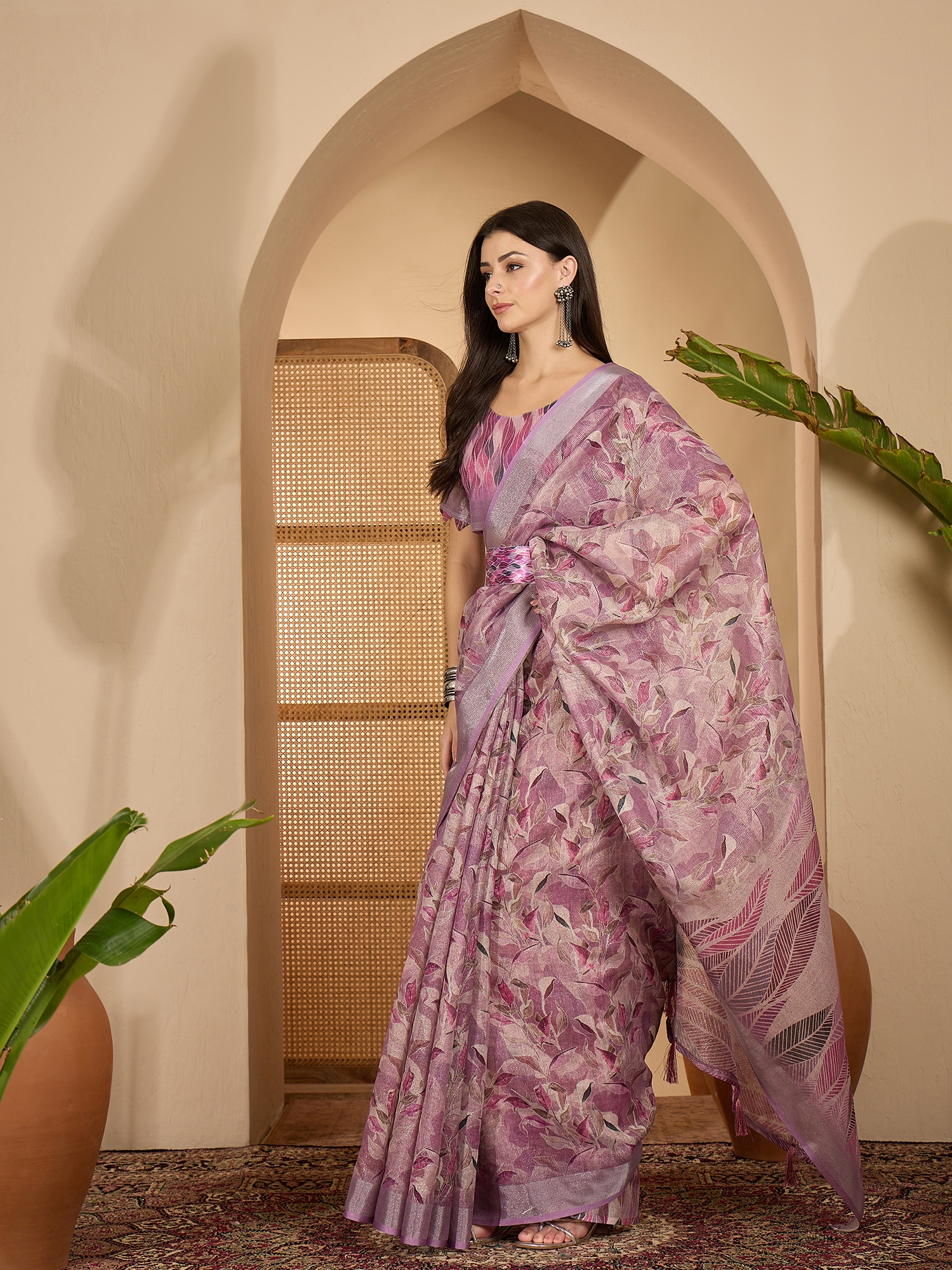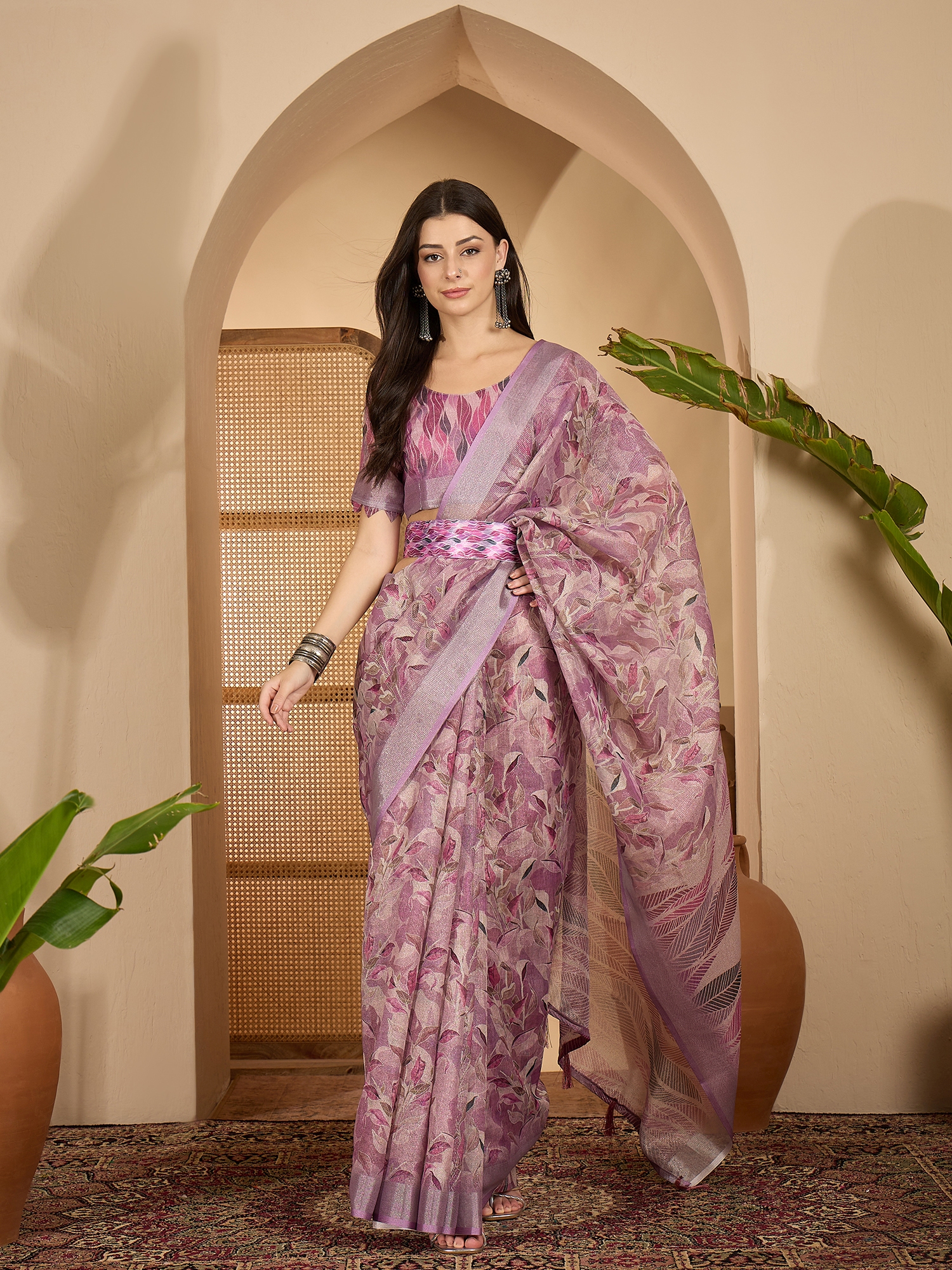 AASTHA FASHION Fashion Dream Womens Lavender Linen Zari Gold Saree | Soft & Elegant Traditional Wear