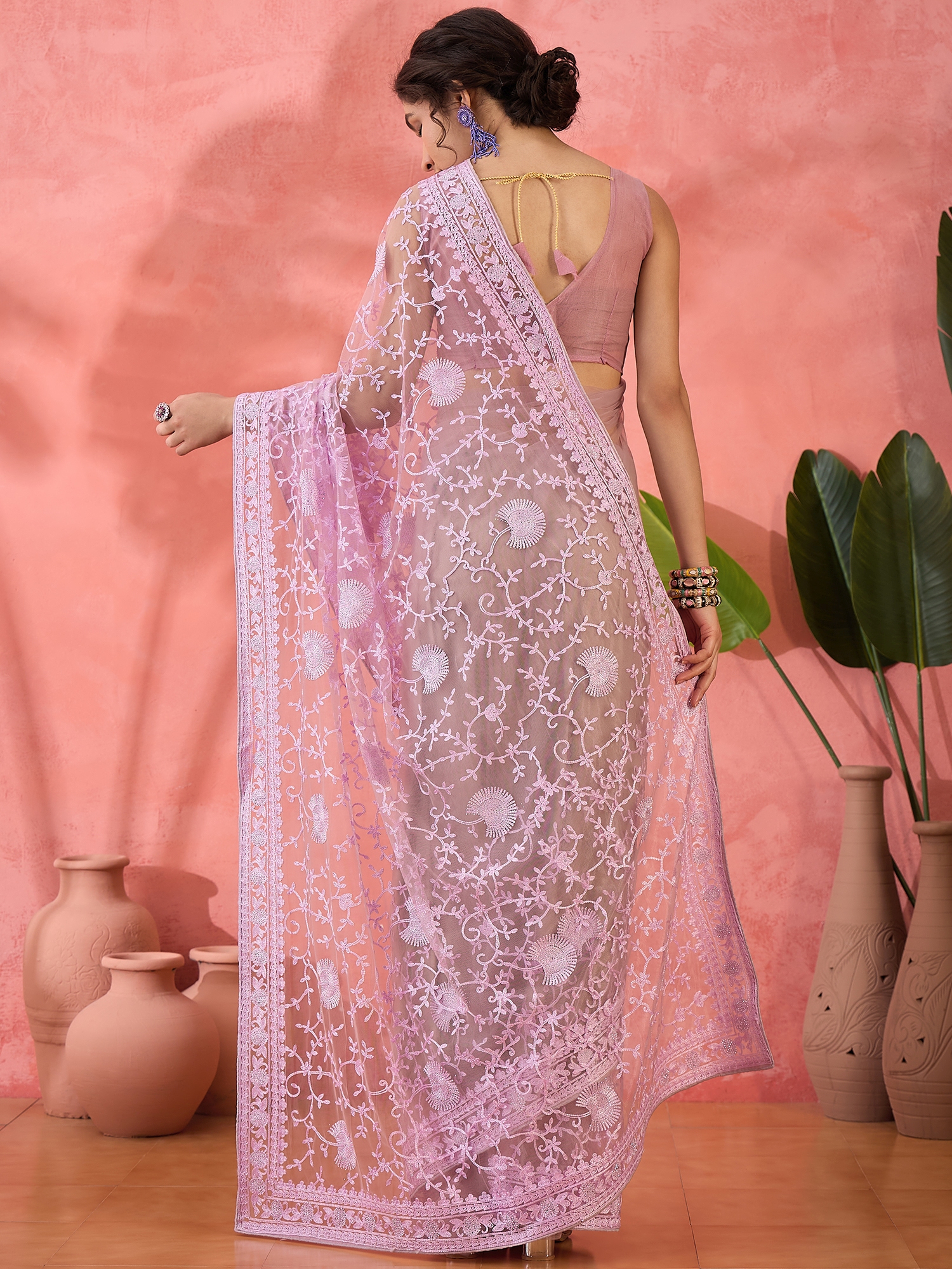 AASTHA FASHION Fashion Dream Womens Lavender Net Saree | Soft & Elegant Traditional Wear