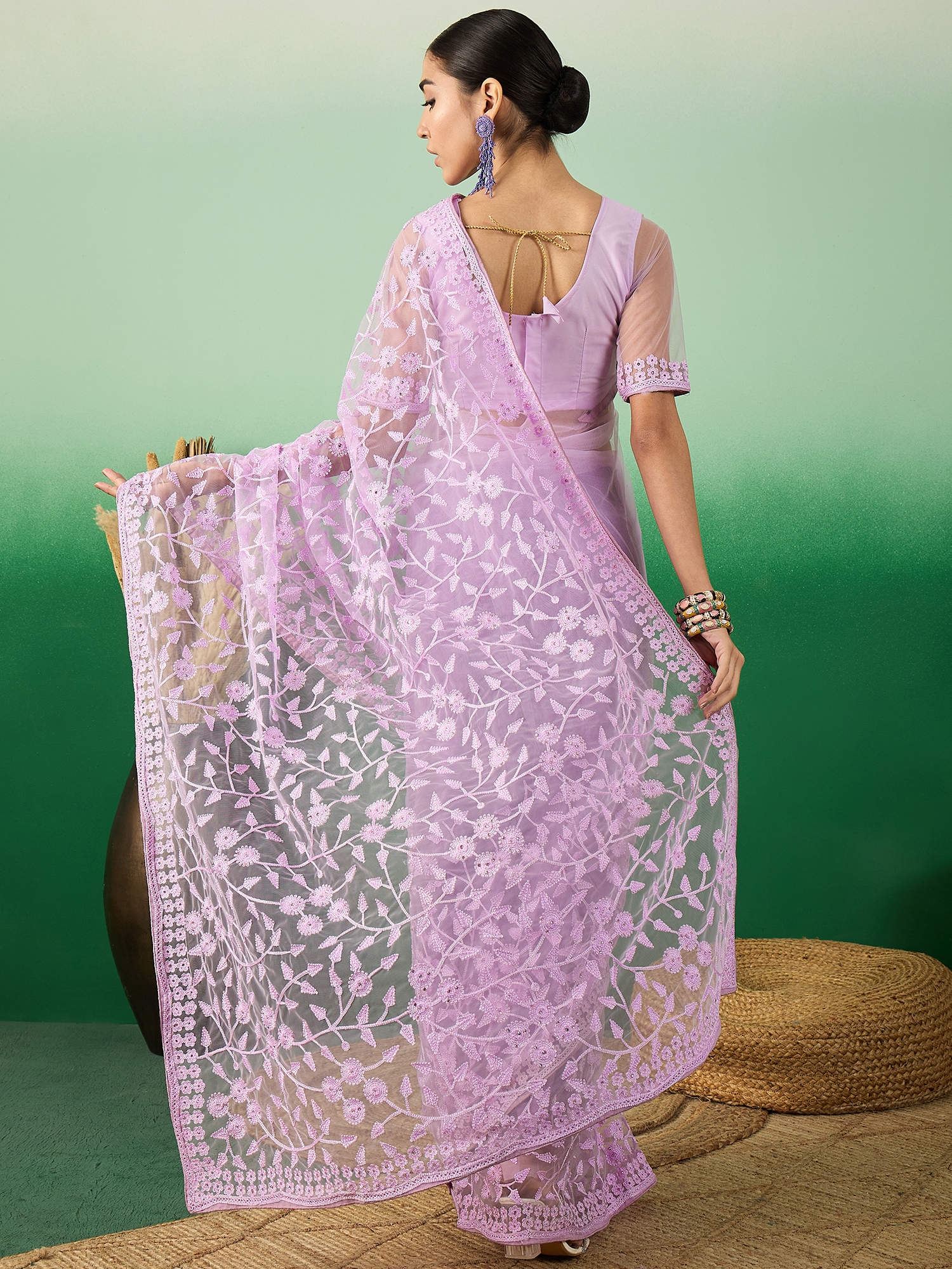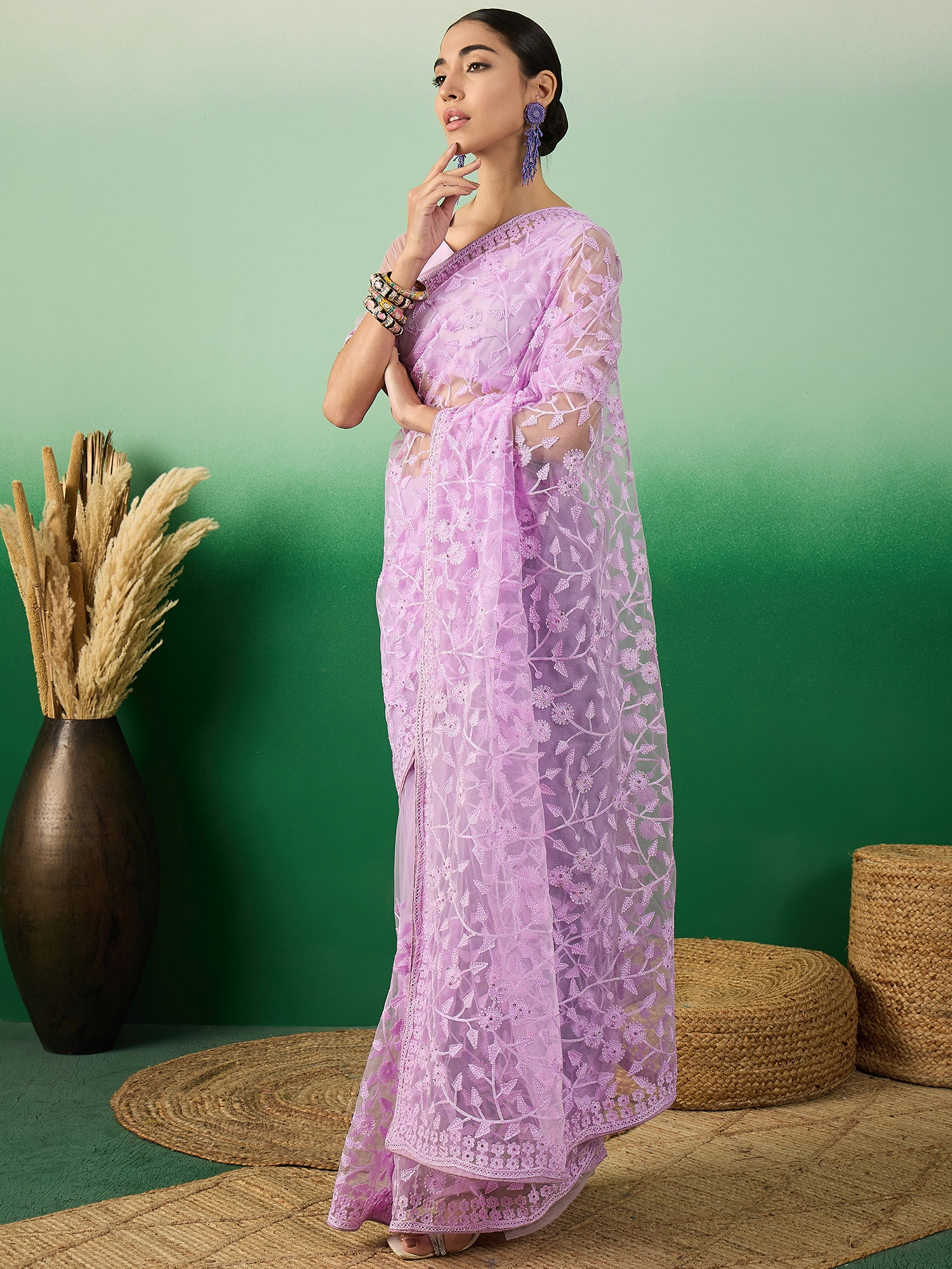AASTHA FASHION Fashion Dream Womens Lavender Net Saree | Soft & Elegant Traditional Wear